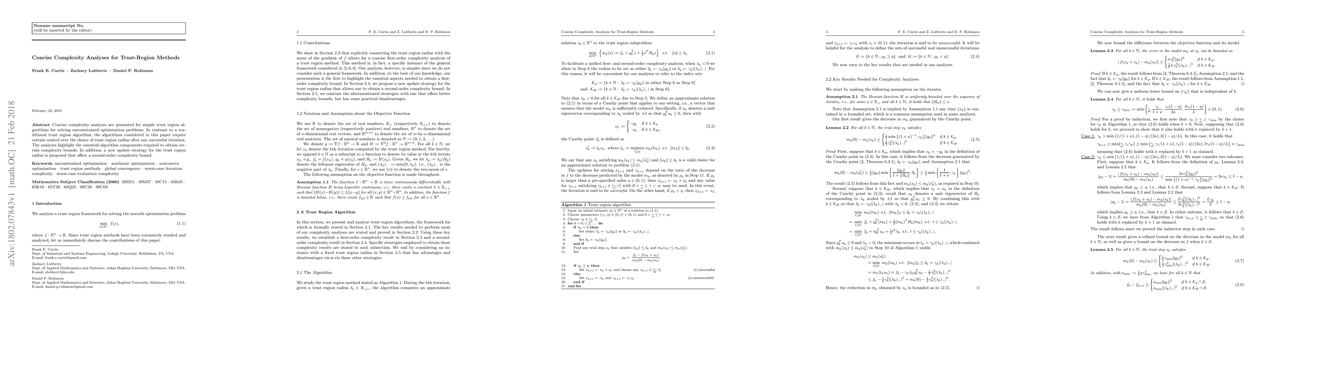 This paper presents concise complexity analyses for trust-region algorithms with controlled radius updates for solving unconstrained optimization problems. It introduces a new update strategy for the trust region radius that achieves a second-order complexity bound.