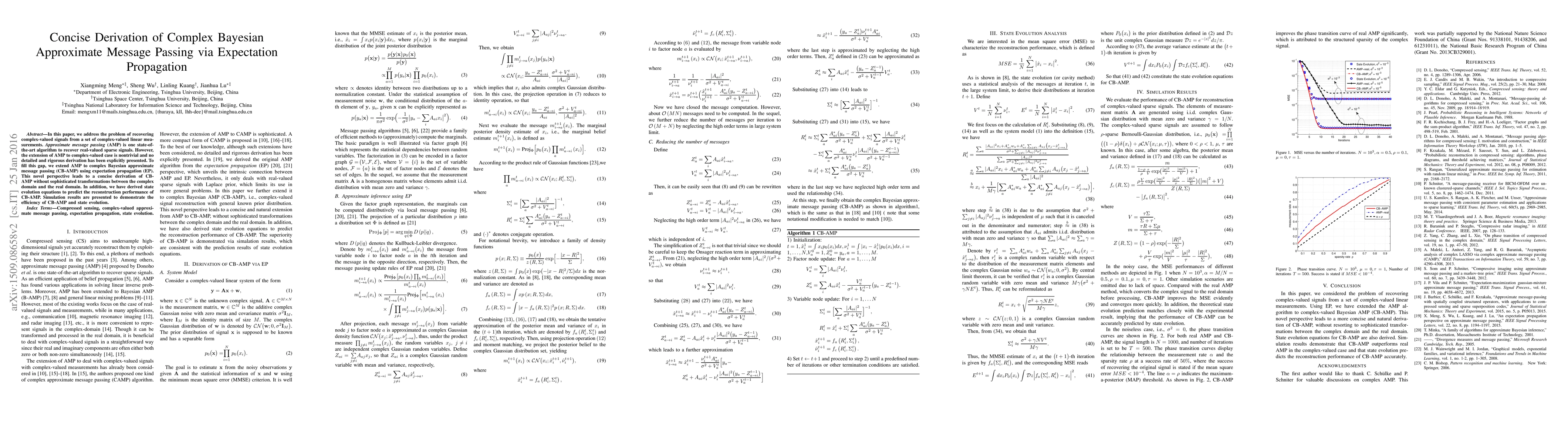 This paper extends approximate message passing (AMP) to the complex-valued domain via expectation propagation, presenting a concise derivation of complex Bayesian approximate message passing (CB-AMP). It also derives state evolution equations to predict CB-AMP's performance, validated through simulations.