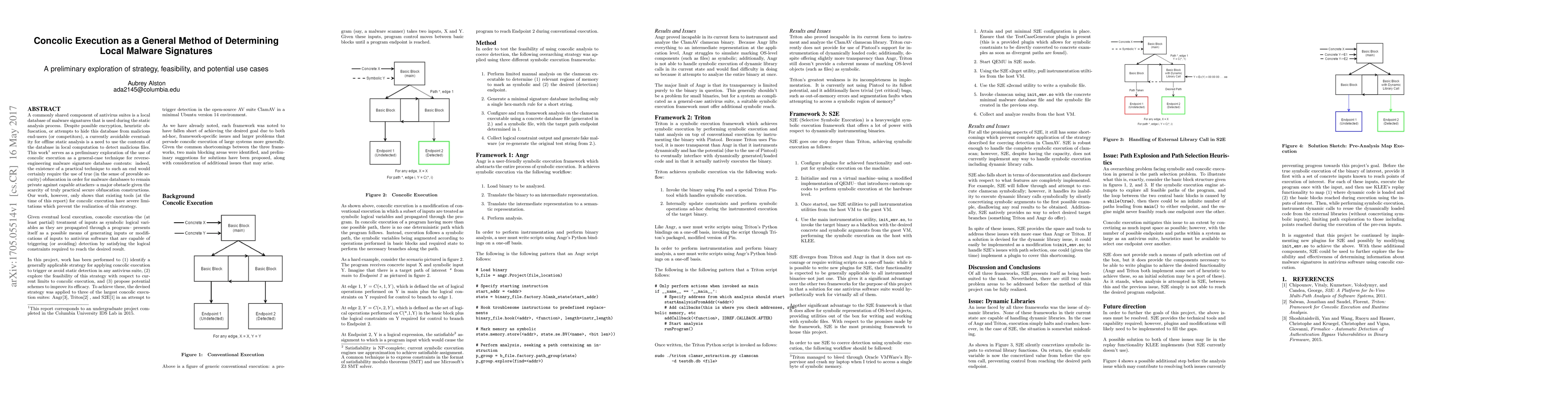 This paper explores concolic execution as a method for reverse-engineering malware signature databases used in static analysis, highlighting the limitations of current tools in achieving this goal. Despite the potential for this approach, existing concolic execution tools are insufficient for practical implementation.