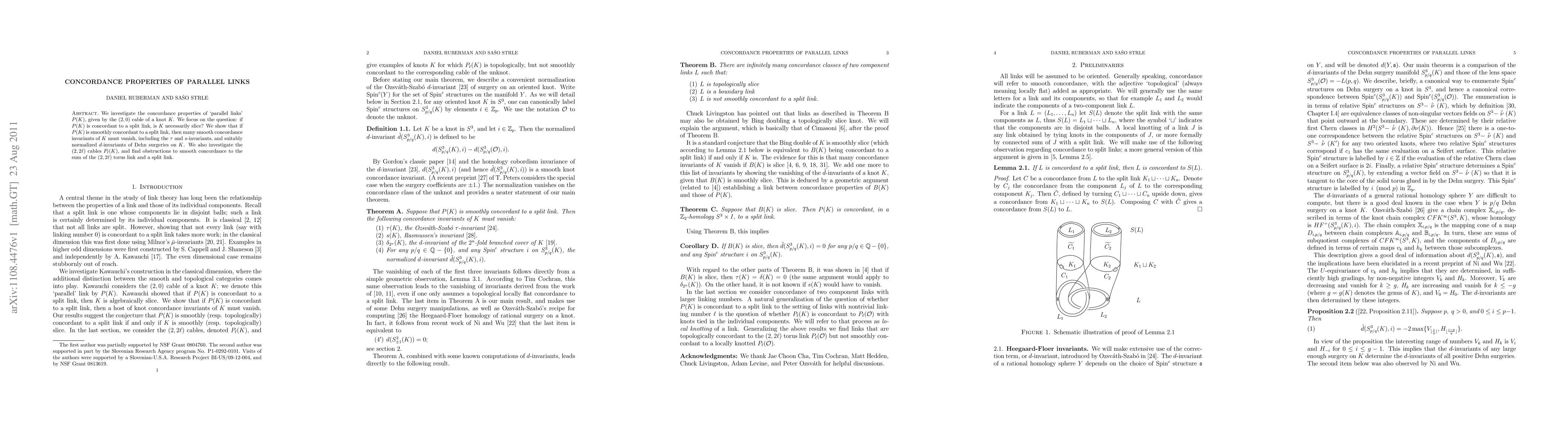 We investigate the concordance properties of `parallel links' P(K), given by the (2,0) cable of a knot K. We focus on the question: if P(K) is concordant to a split link, is K necessarily slice? We show that if P(K) is smoothly concordant to a split link, then many smooth concordance invariants of K must vanish, including the tau and s-invariants, and suitably normalized d-invariants of surgeries on K. We also investigate the (2,2m) cables P_m(K), and find obstructions to smooth concordance to the sum of the (2,2m) torus link and a split link.