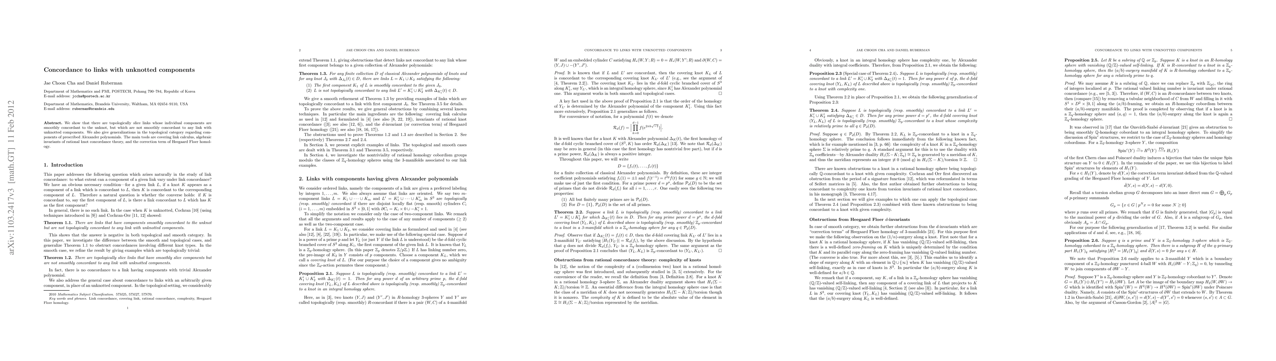Summary: This paper demonstrates the existence of links where each component is concordant to the unknot but the entire link is not concordant to any link with unknotted components. It provides examples in both topological and smooth categories, and utilizes covering link calculus, rational knot concordance theory, and Heegaard Floer homology for its proofs.