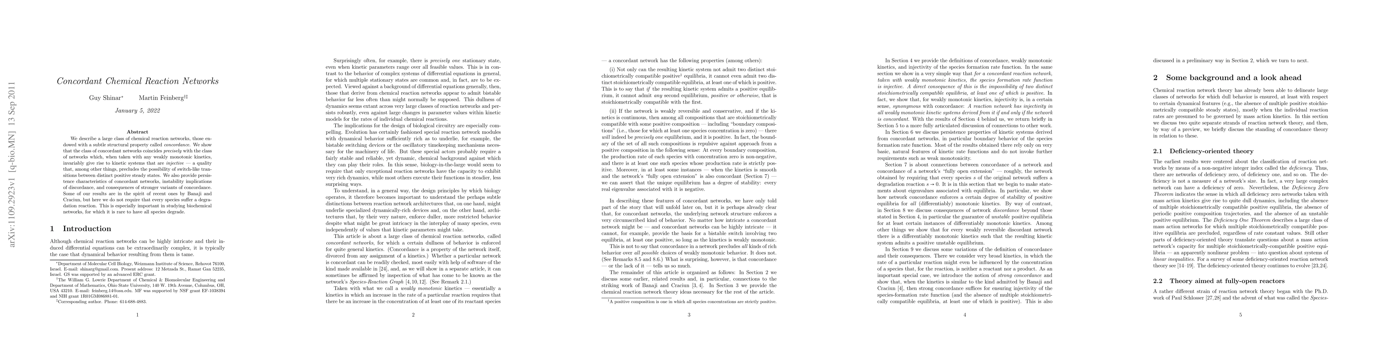 The paper introduces and defines the concept of concordance in chemical reaction networks, linking it to injectivity in kinetic systems.