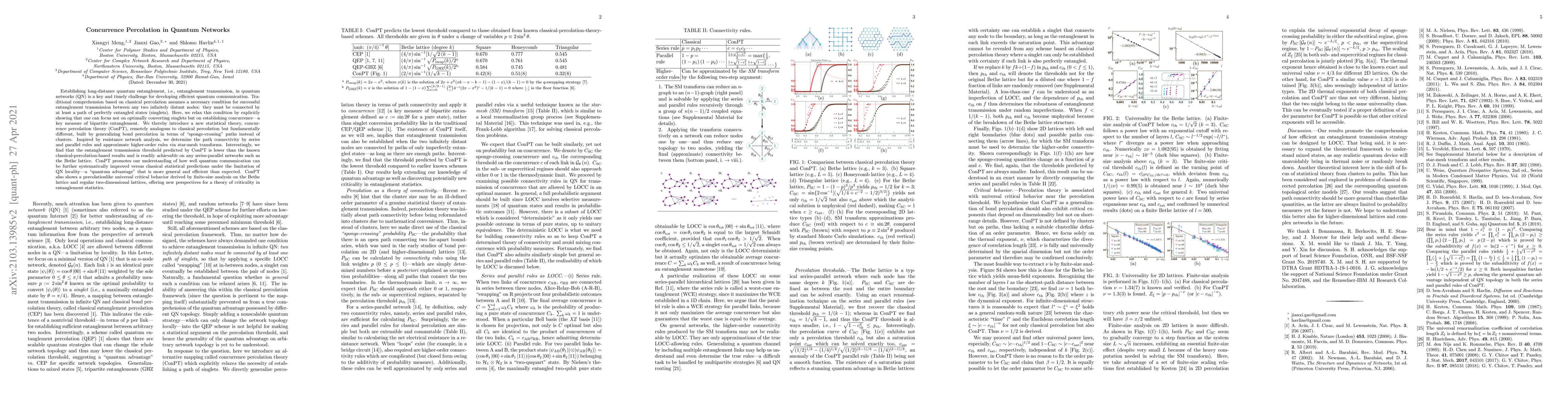 This paper introduces concurrence percolation theory (ConPT) to improve understanding of long-distance quantum entanglement transmission in quantum networks. Unlike classical percolation, ConPT leverages concurrence instead of perfectly entangled states, revealing a lower transmission threshold and a "quantum advantage" over classical predictions.