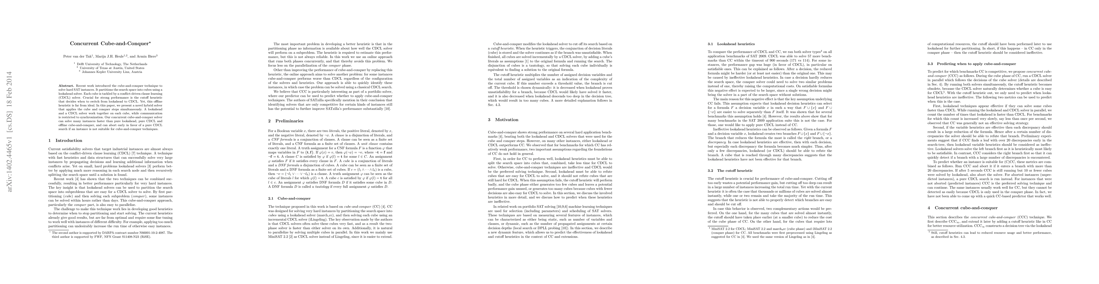 This paper introduces a concurrent cube-and-conquer solver that integrates lookahead and conflict-driven clause learning (CDCL) solvers to tackle SAT instances simultaneously, improving performance over traditional methods. The solver can abort early if cube-and-conquer techniques are unsuitable, optimizing search efficiency.
