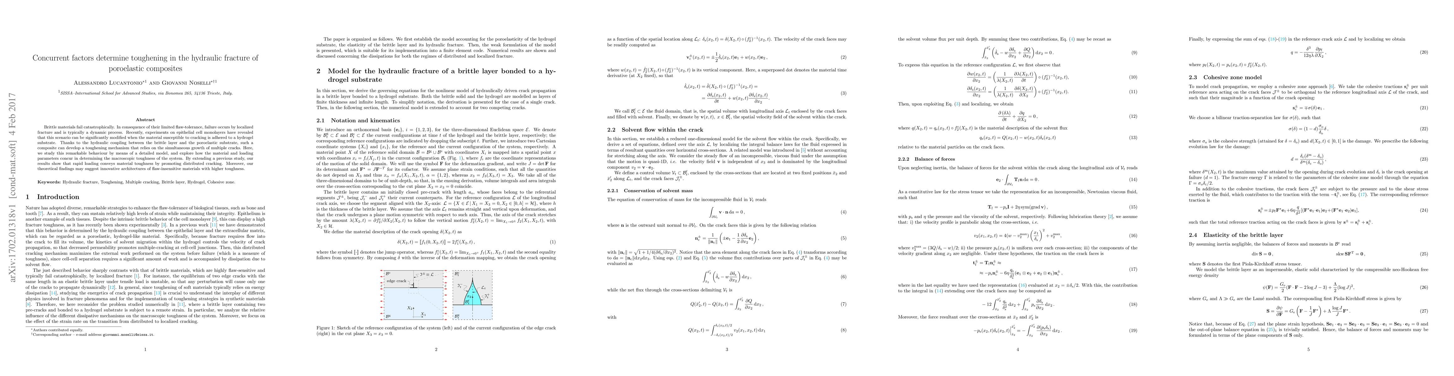 This paper investigates how the interaction between a brittle layer and a poroelastic hydrogel substrate leads to toughening through simultaneous crack growth, revealing that rapid loading enhances distributed cracking and increases material toughness. The study provides insights into designing more robust, flaw-tolerant material architectures.
