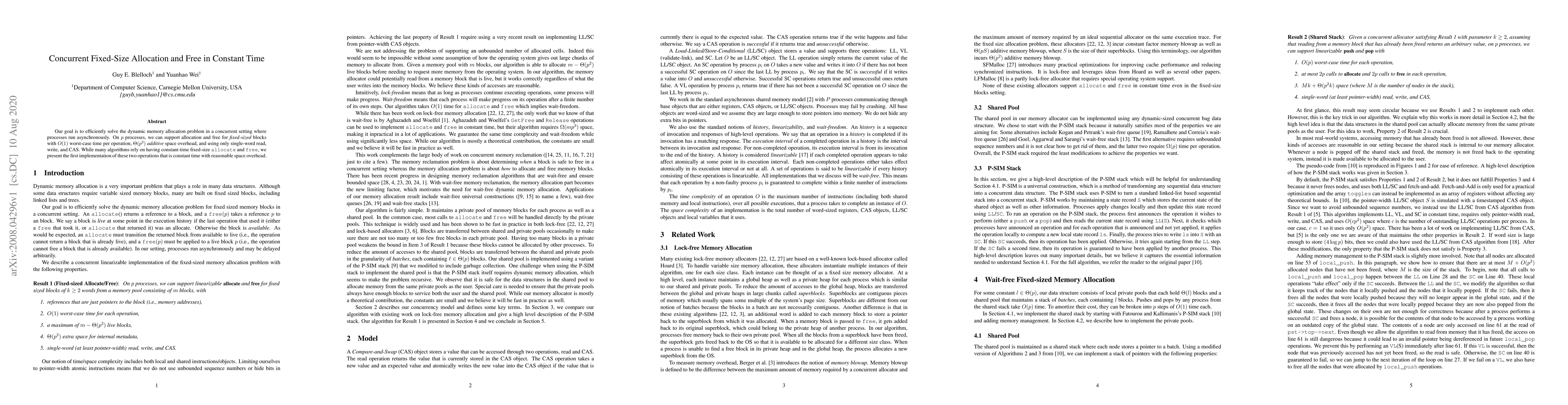 Researchers developed a method to efficiently manage dynamic memory allocation in a concurrent setting with constant-time fixed-size allocation and free operations, using only single-word read, write, and CAS instructions.