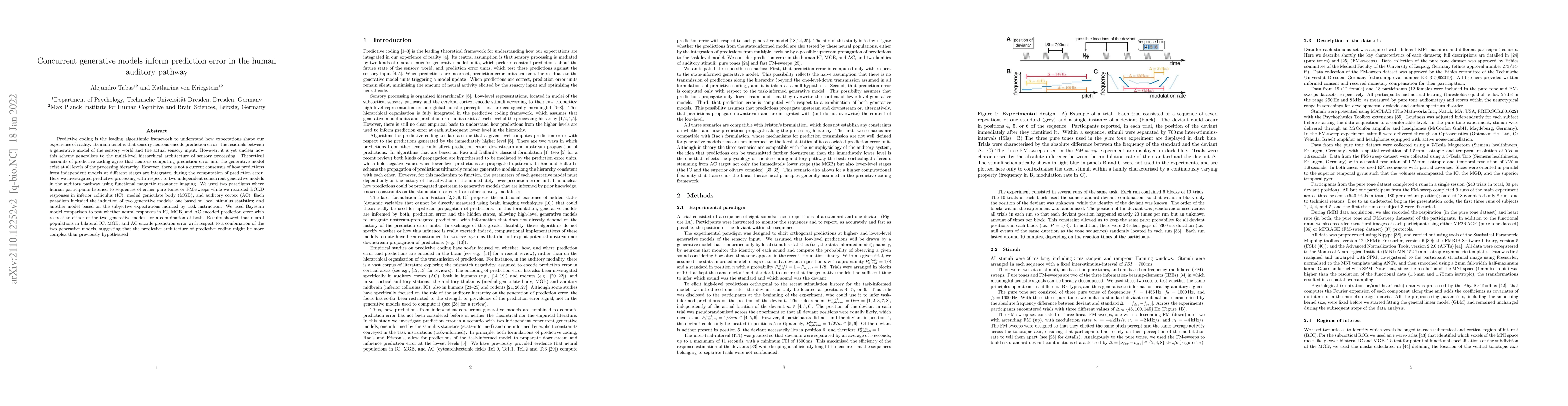 This study investigates how predictive coding operates in the human auditory pathway using concurrent generative models. Findings reveal that neural responses in the inferior colliculus, medial geniculate body, and auditory cortex encode prediction error based on a combination of local stimulus statistics and subjective expectations, suggesting a more complex predictive architecture than previously understood.