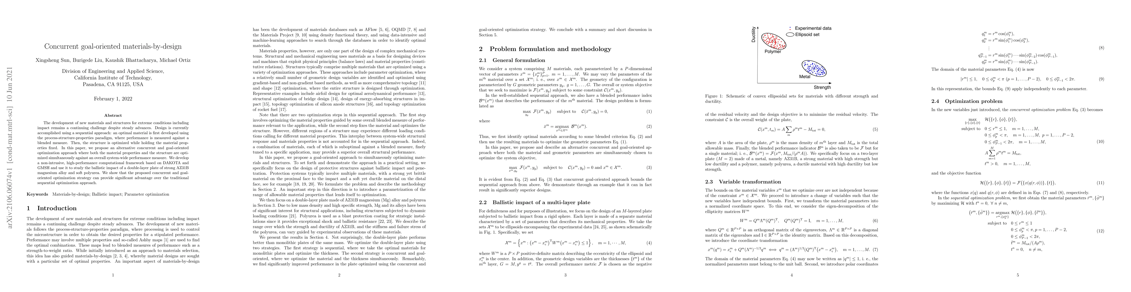 This paper proposes a concurrent, goal-oriented optimization strategy for developing new materials and structures for extreme conditions, optimizing both material properties and structure simultaneously. The method demonstrates significant advantages over traditional sequential approaches through a computational framework applied to the ballistic impact of a double-layer plate.