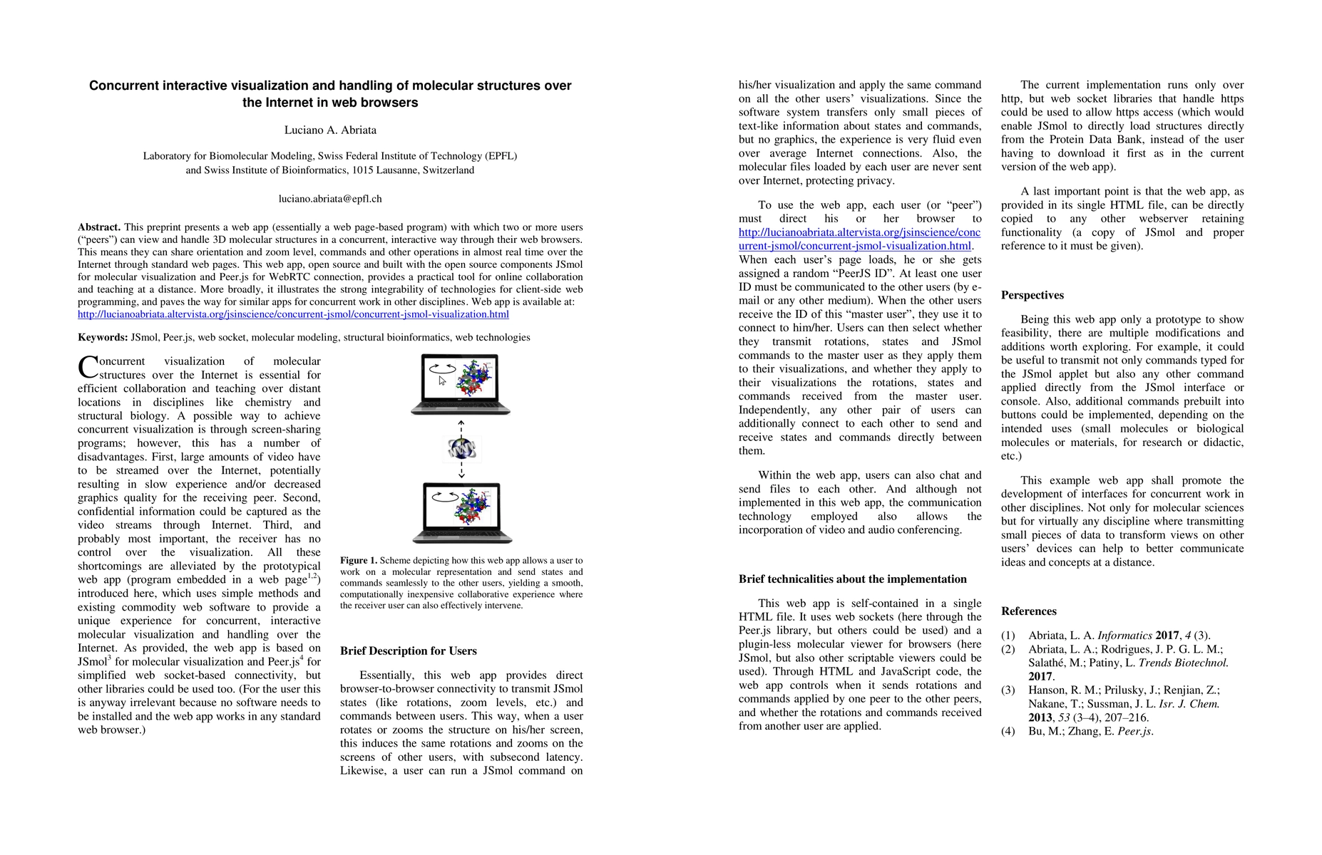 This preprint introduces a web app for concurrent, interactive 3D molecular structure visualization and manipulation over the Internet, enabling real-time collaboration among users via web browsers. Built with JSmol and Peer.js, it offers a practical tool for remote teaching and online collaboration, showcasing the potential for similar applications in other disciplines.