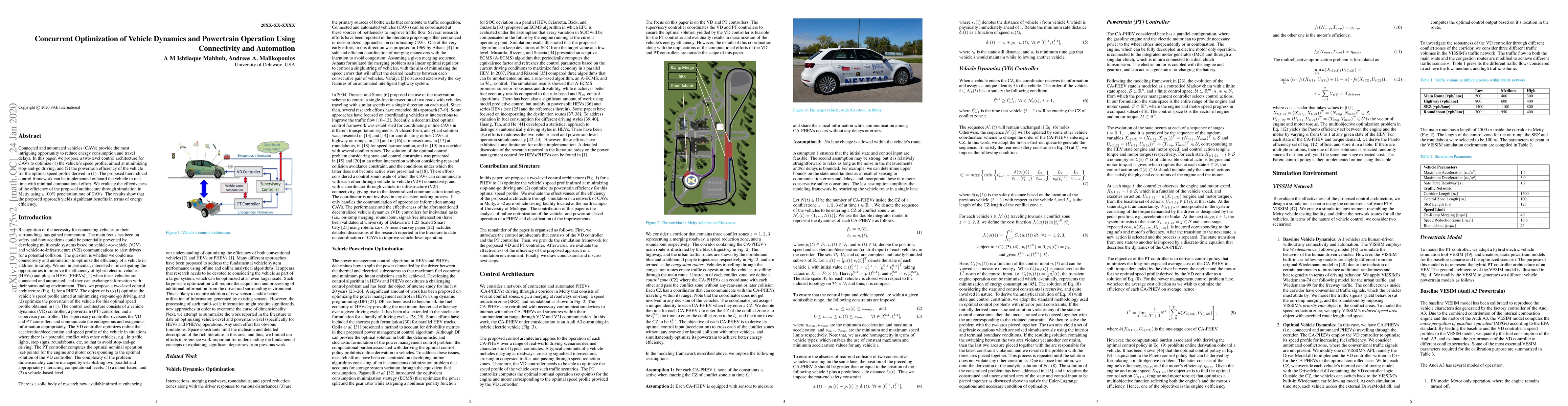 Connected and automated vehicles (CAVs) provide the most intriguing opportunity to reduce energy consumption and travel delays. In this paper, we propose a two-level control architecture for CAVs to optimize (1) the vehicle's speed profile, aimed at minimizing stop-and-go driving, and (2) the powertrain efficiency of the vehicle for the optimal speed profile derived in (1). The proposed hierarchical control framework can be implemented onboard the vehicle in real time with minimal computational effort. We evaluate the effectiveness of the efficiency of the proposed architecture through simulation in Mcity using a 100% penetration rate of CAVs. The results show that the proposed approach yields significant benefits in terms of energy efficiency.