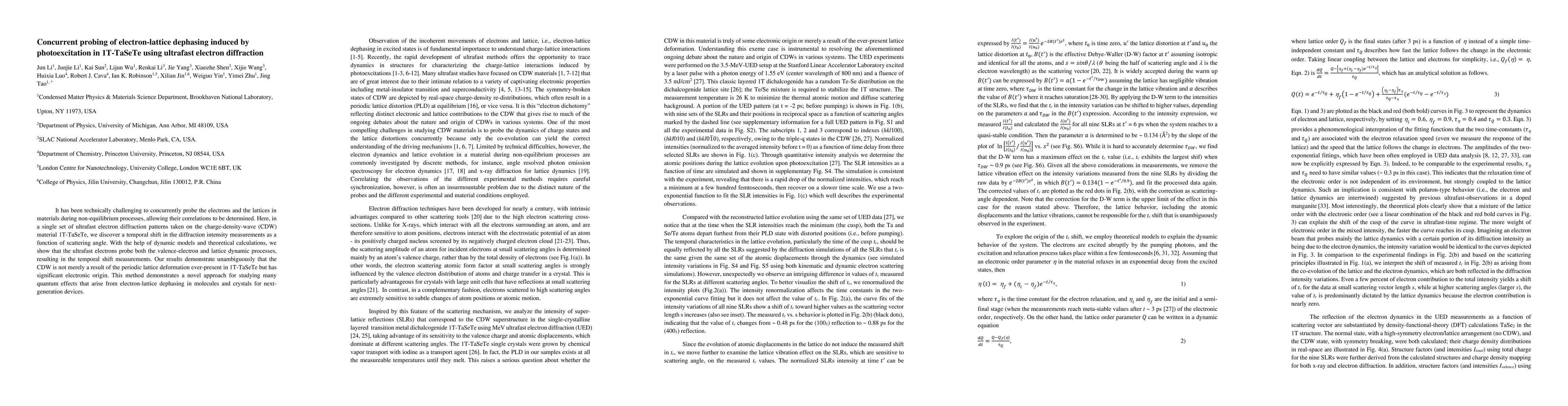 This study uses ultrafast electron diffraction to concurrently probe electron-lattice dephasing in 1T-TaSeTe, revealing a temporal shift in diffraction intensity due to both valence-electron and lattice dynamics. The findings indicate that the charge-density wave in 1T-TaSeTe has significant electronic origins, not just lattice deformation, offering a new method for studying electron-lattice interactions in quantum materials.