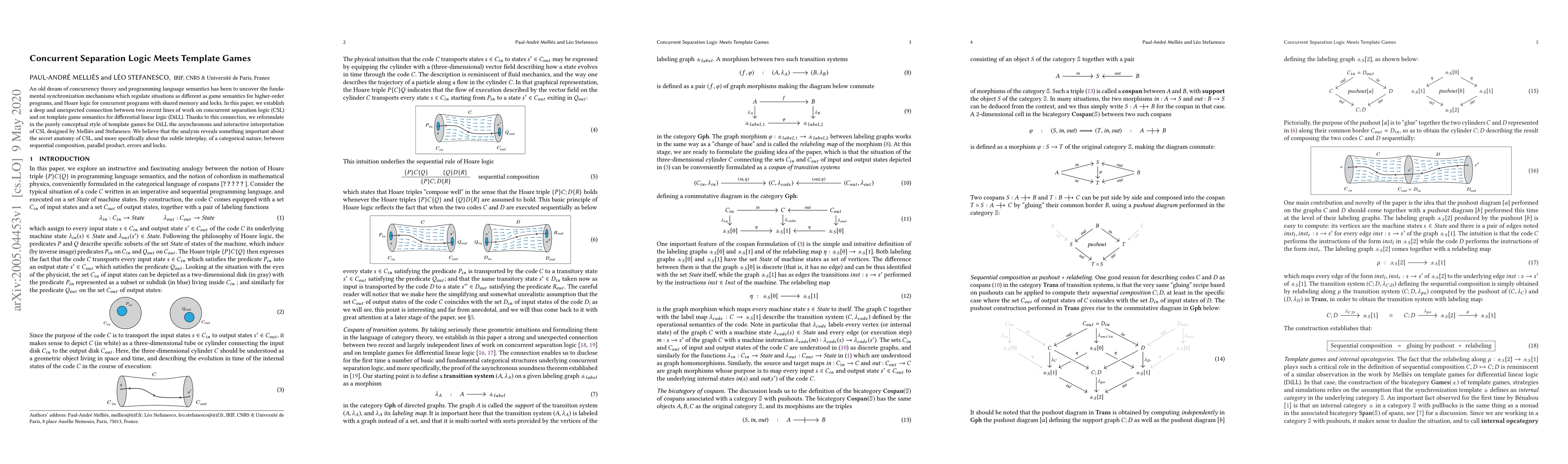 An old dream of concurrency theory and programming language semantics has been to uncover the fundamental synchronization mechanisms which regulate situations as different as game semantics for higher-order programs, and Hoare logic for concurrent programs with shared memory and locks. In this paper, we establish a deep and unexpected connection between two recent lines of work on concurrent separation logic (CSL) and on template game semantics for differential linear logic (DiLL). Thanks to this connection, we reformulate in the purely conceptual style of template games for DiLL the asynchronous and interactive interpretation of CSL designed by Melli\`es and Stefanesco. We believe that the analysis reveals something important about the secret anatomy of CSL, and more specifically about the subtle interplay, of a categorical nature, between sequential composition, parallel product, errors and locks.