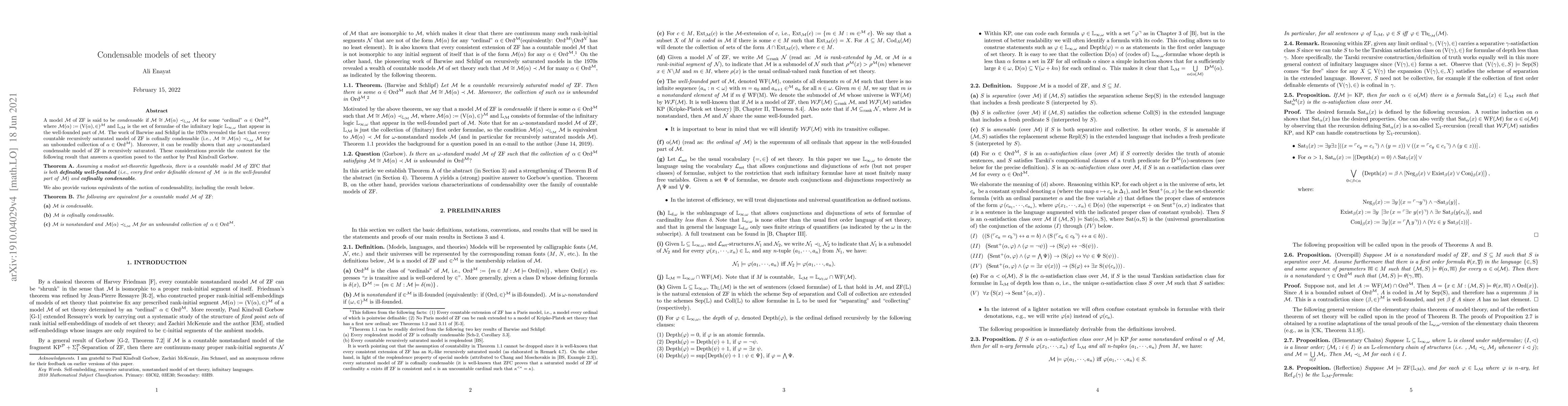 Researchers found condensable models of set theory where every definable element is in the well-founded part, providing new characterizations of countable condensable models and expanding our understanding of these mathematical structures.