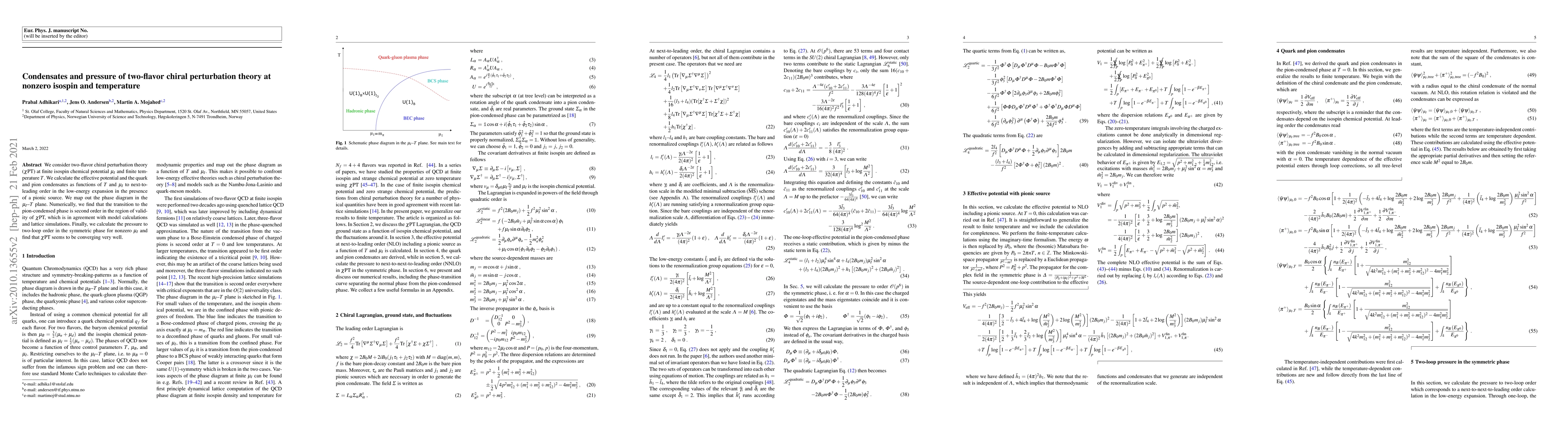 This paper explores two-flavor chiral perturbation theory at finite isospin chemical potential and temperature, calculating the effective potential, quark and pion condensates, and mapping the phase diagram. It finds a second-order transition to the pion-condensed phase and demonstrates good convergence of $\chi$PT for the pressure calculation.