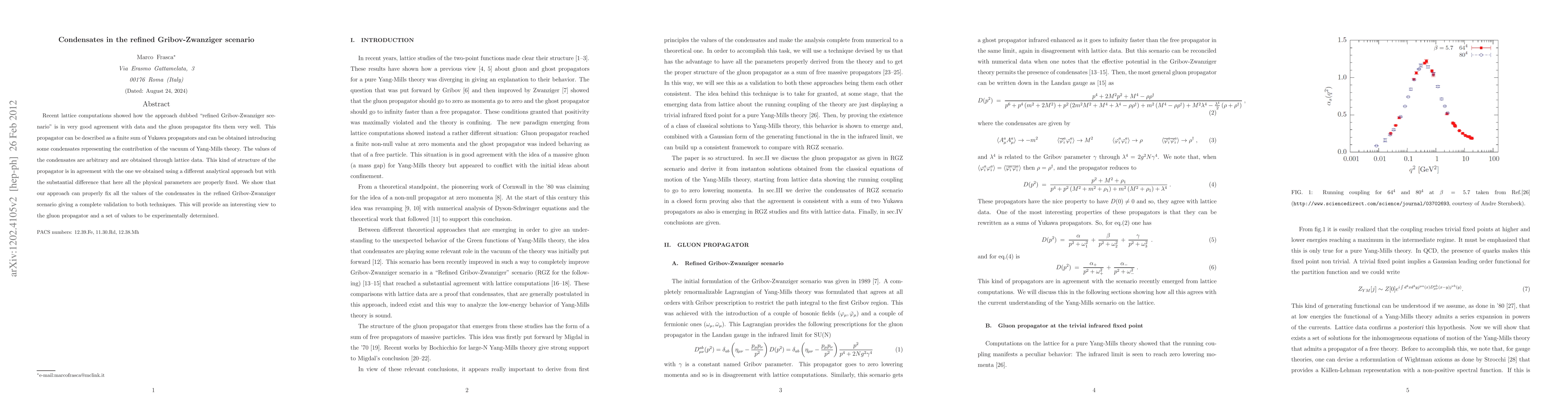 This paper demonstrates that the refined Gribov-Zwanziger scenario accurately fits lattice data, describing the gluon propagator through a sum of Yukawa propagators influenced by vacuum condensates. The study validates this approach by precisely determining the values of these condensates, providing a comprehensive view of the gluon propagator and potential experimental values.