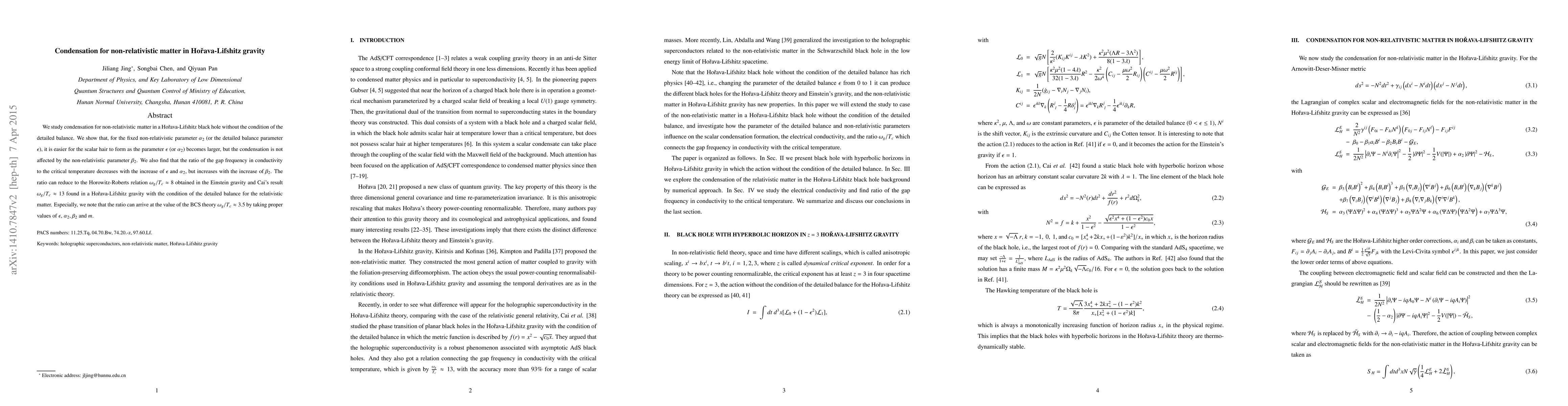 Researchers investigated condensation in non-relativistic matter within Hoñrava-Lifshitz black holes, finding that the formation of scalar hair is easier as the detailed balance parameter increases, but not affected by a separate non-relativistic parameter.