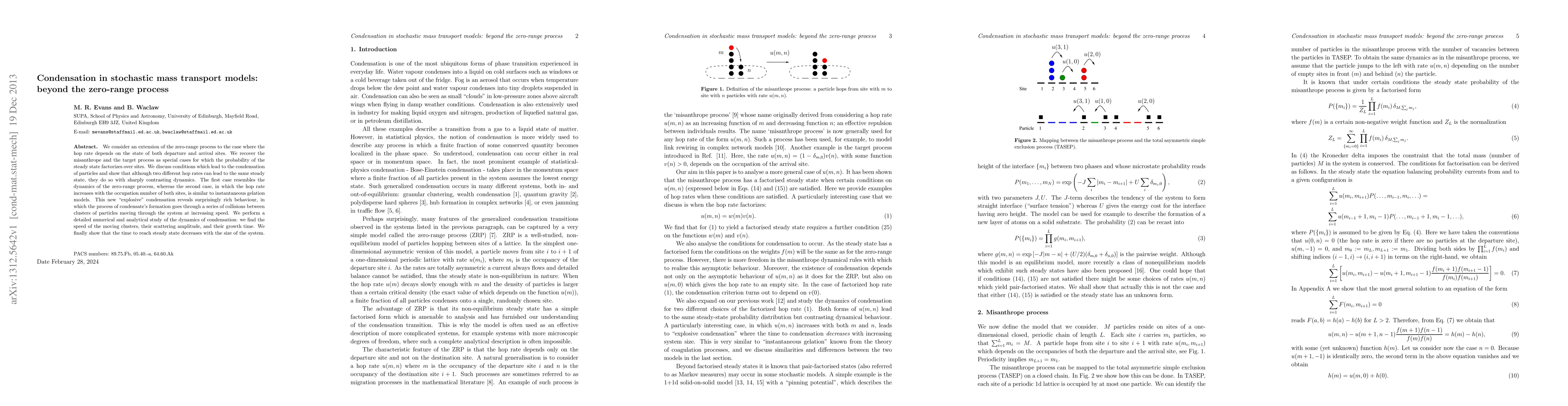 We consider an extension of the zero-range process to the case where the hop rate depends on the state of both departure and arrival sites. We recover the misanthrope and the target process as special cases for which the probability of the steady state factorizes over sites. We discuss conditions which lead to the condensation of particles and show that although two different hop rates can lead to the same steady state, they do so with sharply contrasting dynamics. The first case resembles the dynamics of the zero-range process, whereas the second case, in which the hop rate increases with the occupation number of both sites, is similar to instantaneous gelation models. This new "explosive" condensation reveals surprisingly rich behaviour, in which the process of condensate's formation goes through a series of collisions between clusters of particles moving through the system at increasing speed. We perform a detailed numerical and analytical study of the dynamics of condensation: we find the speed of the moving clusters, their scattering amplitude, and their growth time. We finally show that the time to reach steady state decreases with the size of the system.