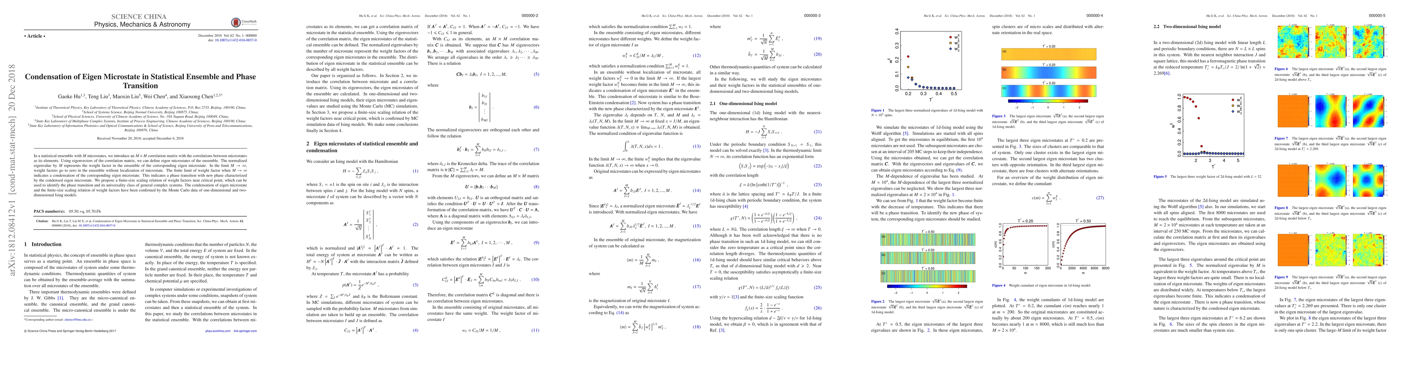 In a statistical ensemble with $M$ microstates, we introduce an $M \times M$ correlation matrix with the correlations between microstates as its elements. Using eigenvectors of the correlation matrix, we can define eigen microstates of the ensemble. The normalized eigenvalue by $M$ represents the weight factor in the ensemble of the corresponding eigen microstate. In the limit $M \to \infty$, weight factors go to zero in the ensemble without localization of microstate. The finite limit of weight factor when $M \to \infty$ indicates a condensation of the corresponding eigen microstate. This indicates a phase transition with new phase characterized by the condensed eigen microstate. We propose a finite-size scaling relation of weight factors near critical point, which can be used to identify the phase transition and its universality class of general complex systems. The condensation of eigen microstate and the finite-size scaling relation of weight factors have been confirmed by the Monte Carlo data of one-dimensional and two-dimensional Ising models.