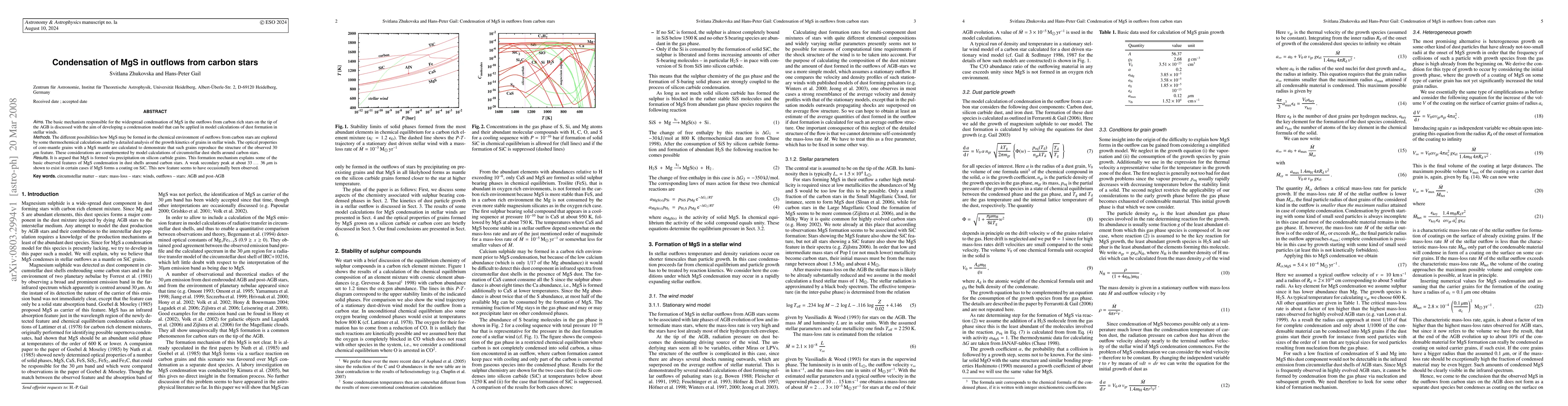 This study explores the condensation mechanism of MgS in outflows from carbon stars on the asymptotic giant branch (AGB), proposing that it forms via precipitation on silicon carbide grains. The research combines thermochemical calculations and growth kinetics analysis to demonstrate that MgS-coated grains can reproduce the observed 30 μm feature in stellar winds, providing a model for dust formation in these environments.