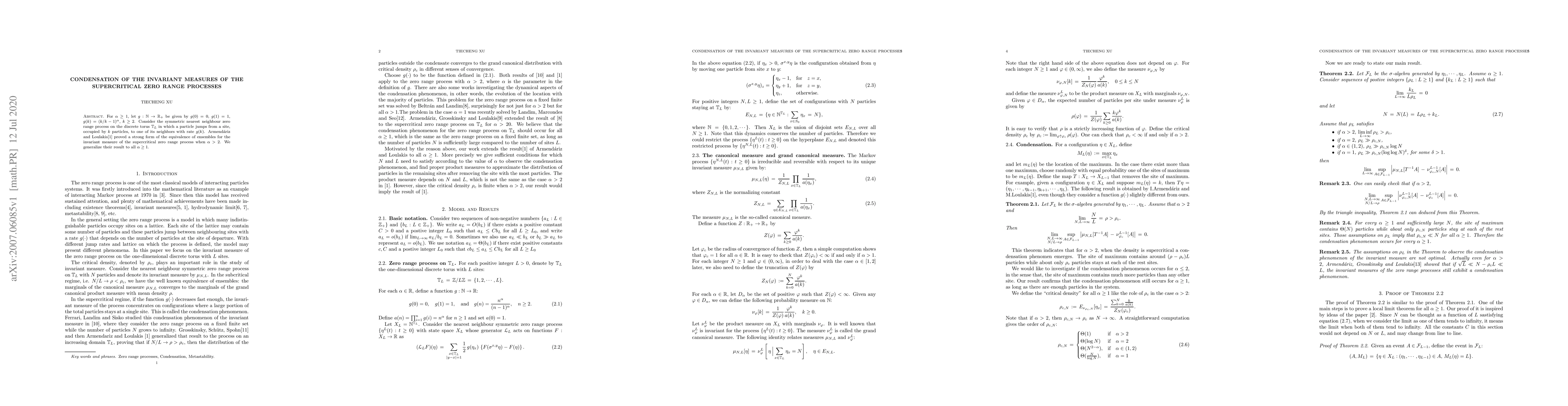 This paper generalizes the equivalence of ensembles for the invariant measures of supercritical zero range processes for $\alpha \geq 1$, extending previous results that only applied for $\alpha > 2$. The focus is on the symmetric nearest-neighbor process on a discrete torus.
