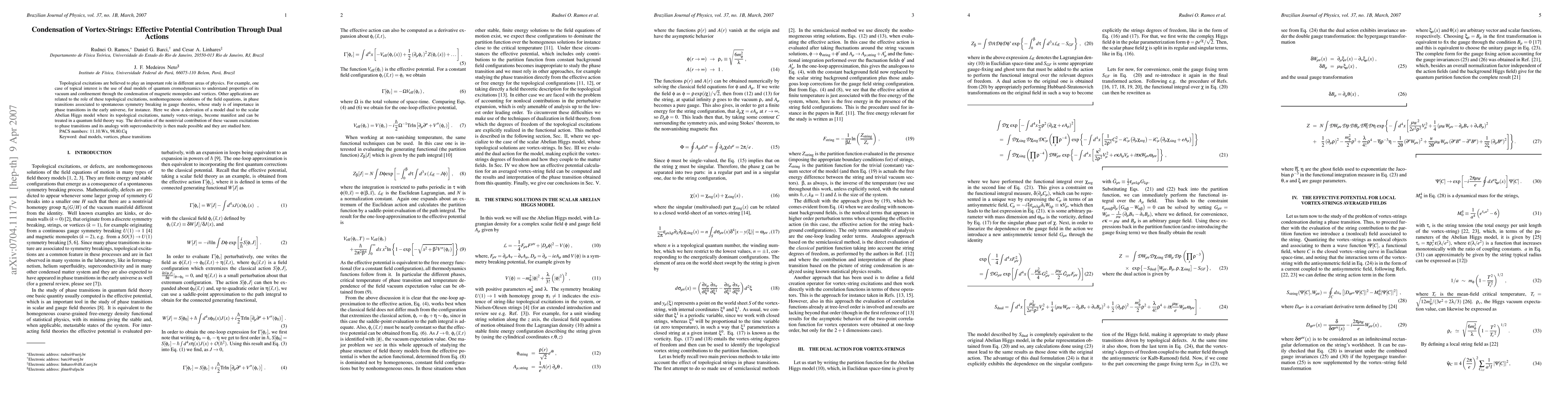 Topological excitations are believed to play an important role in different areas of physics. For example, one case of topical interest is the use of dual models of quantum cromodynamics to understand properties of its vacuum and confinement through the condensation of magnetic monopoles and vortices. Other applications are related to the role of these topological excitations, nonhomogeneous solutions of the field equations, in phase transitions associated to spontaneous symmetry breaking in gauge theories, whose study is of importance in phase transitions in the early universe, for instance. Here we show a derivation of a model dual to the scalar Abelian Higgs model where its topological excitations, namely vortex-strings, become manifest and can be treated in a quantum field theory way. The derivation of the nontrivial contribution of these vacuum excitations to phase transitions and its analogy with superconductivity is then made possible and they are studied here.