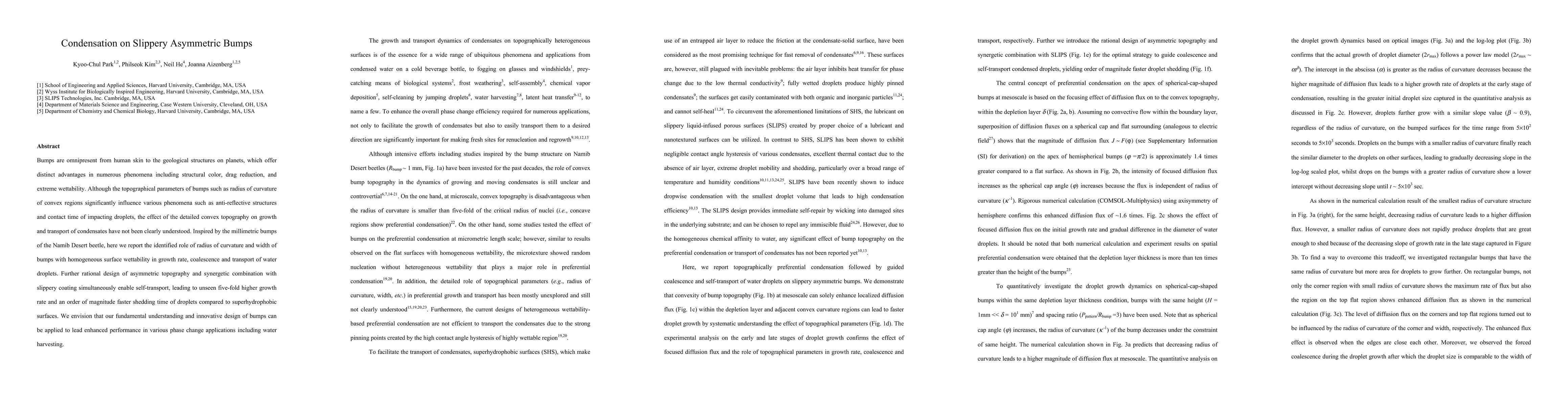 This research identifies the significant impact of bump radius of curvature and width on water droplet growth and transport on surfaces. By designing asymmetric, convex-topped bumps combined with slippery coatings, the study achieves a five-fold increase in droplet growth rate and ten-fold reduction in shedding time compared to conventional superhydrophobic surfaces, potentially enhancing water harvesting applications.