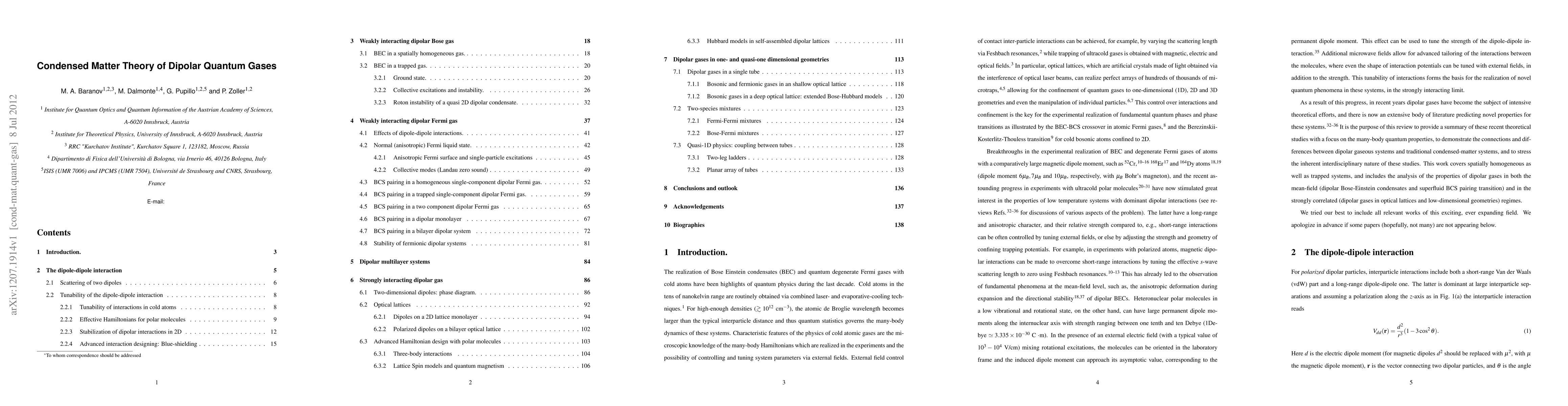 This paper reviews theoretical advancements in condensed matter physics concerning dipolar quantum gases, focusing on the many-body properties of systems with anisotropic, long-range dipolar interactions. It covers various regimes from weakly to strongly interacting gases and highlights connections between theoretical models and experimental setups.