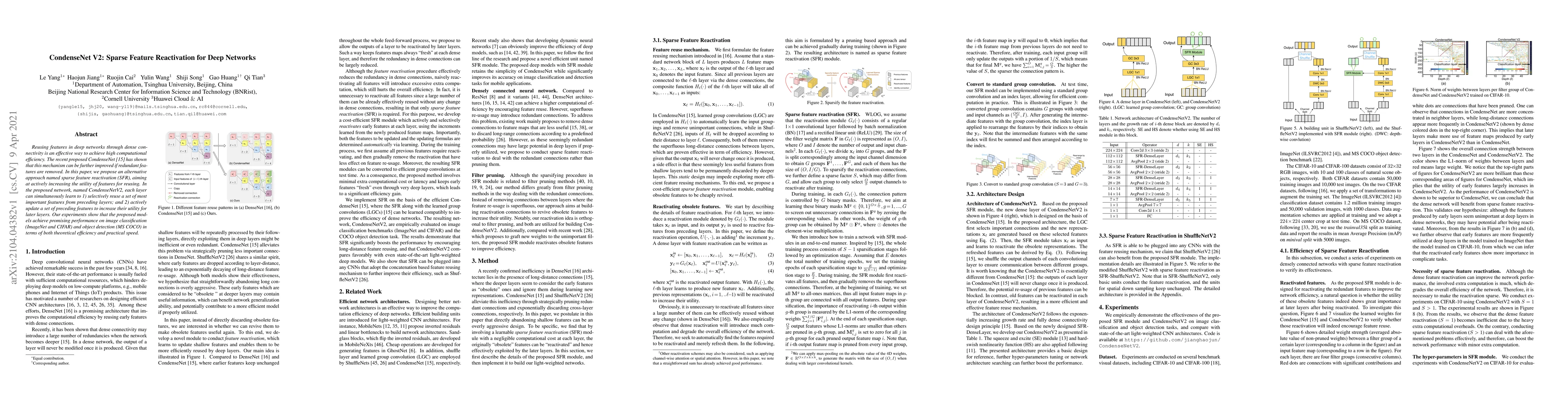 Reusing features in deep networks through dense connectivity is an effective way to achieve high computational efficiency. The recent proposed CondenseNet has shown that this mechanism can be further improved if redundant features are removed. In this paper, we propose an alternative approach named sparse feature reactivation (SFR), aiming at actively increasing the utility of features for reusing. In the proposed network, named CondenseNetV2, each layer can simultaneously learn to 1) selectively reuse a set of most important features from preceding layers; and 2) actively update a set of preceding features to increase their utility for later layers. Our experiments show that the proposed models achieve promising performance on image classification (ImageNet and CIFAR) and object detection (MS COCO) in terms of both theoretical efficiency and practical speed.