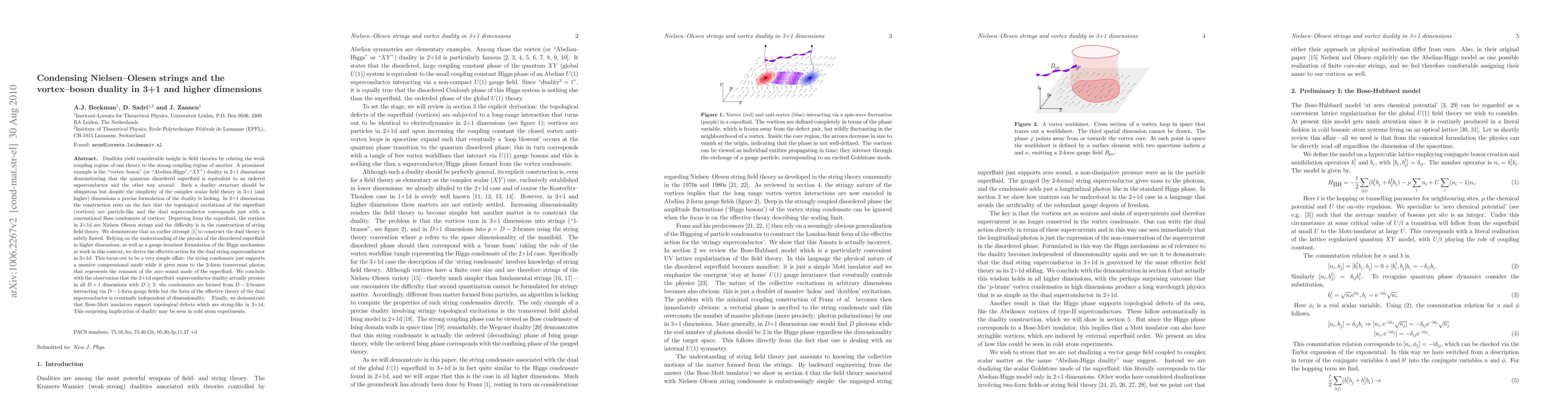 The vortex-boson (or Abelian-Higgs, XY) duality in 2+1 dimensions demonstrates that the quantum disordered superfluid is equivalent to an ordered superconductor and the other way around. Such a duality structure should be ubiquitous but in 3+1 (and higher) dimensions a precise formulation of the duality is lacking. The problem is that the topological defects become extended objects, strings in 3+1D. We argue how the condensate of such vortex strings must behave from the known physics of the disordered superfluid, namely the Bose-Mott insulator. A flaw in earlier proposals is repaired, and a more direct viewpoint, avoiding gauge fields, in terms of the physical supercurrent is laid out, that also easily generalizes to higher-dimensional and more complicated systems. Furthermore topological defects are readily identified; we demonstrate that the Bose-Mott insulator supports line defects, which may be seen in cold atom experiments.