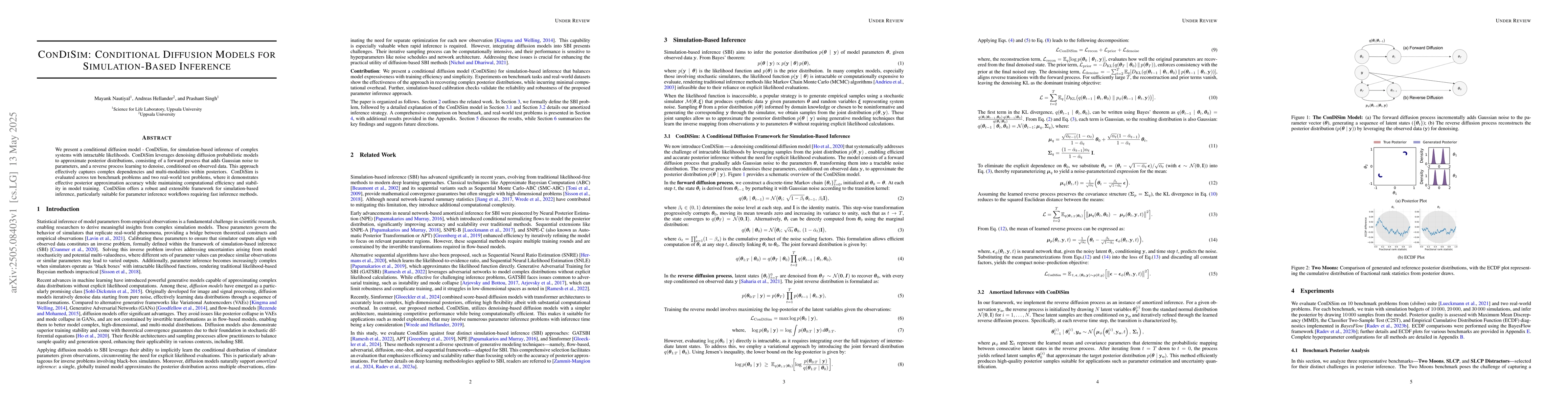 ConDiSim is a conditional diffusion model that approximates complex posterior distributions for simulation-based inference with high accuracy and computational efficiency.