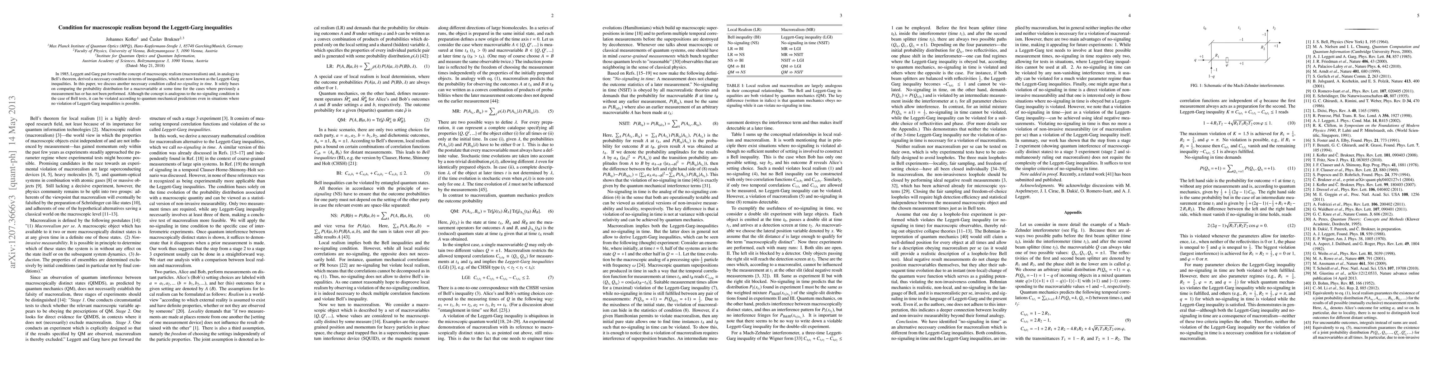 This paper introduces a new necessary condition for macroscopic realism beyond the Leggett-Garg inequalities, termed "no-signaling in time." Unlike the Leggett-Garg inequalities, this condition can be violated in quantum mechanics even when the former are not breached, highlighting a deeper layer of realism.