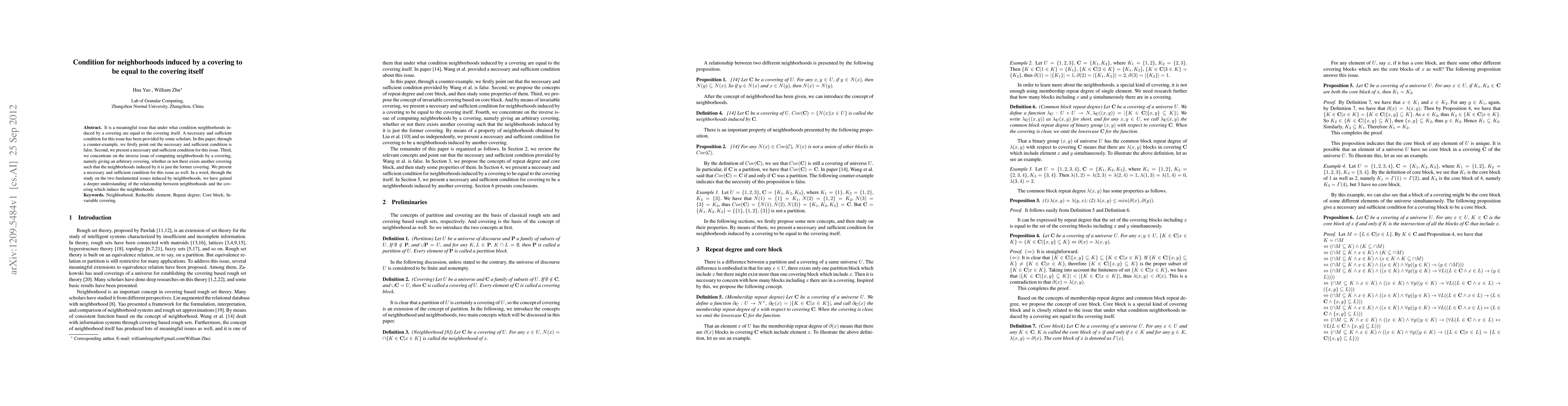 This paper identifies a false necessary and sufficient condition regarding neighborhoods induced by a covering. It then presents a correct necessary and sufficient condition for when neighborhoods induced by a covering equal the covering itself, and explores the inverse problem of computing neighborhoods by a covering, providing a new necessary and sufficient condition for this scenario.