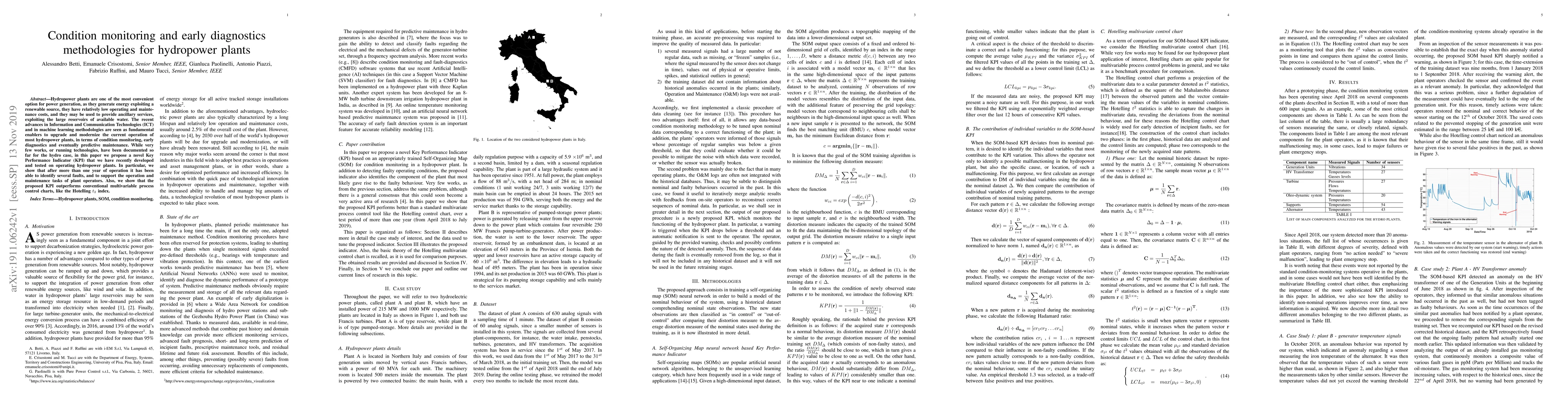 A novel Key Performance Indicator (KPI) has been proposed to improve condition monitoring and early diagnostics in hydropower plants, outperforming conventional multivariable process control charts and identifying faults after over a year of operation.