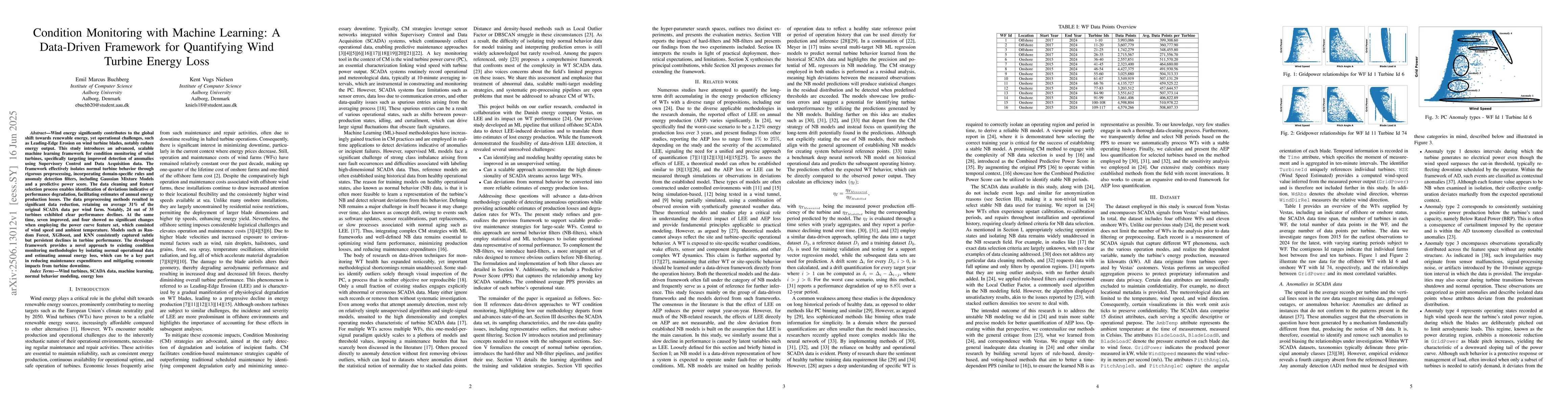 Wind energy significantly contributes to the global shift towards renewable energy, yet operational challenges, such as Leading-Edge Erosion on wind turbine blades, notably reduce energy output. This study introduces an advanced, scalable machine learning framework for condition monitoring of wind turbines, specifically targeting improved detection of anomalies using Supervisory Control and Data Acquisition data. The framework effectively isolates normal turbine behavior through rigorous preprocessing, incorporating domain-specific rules and anomaly detection filters, including Gaussian Mixture Models and a predictive power score. The data cleaning and feature selection process enables identification of deviations indicative of performance degradation, facilitating estimates of annual energy production losses. The data preprocessing methods resulted in significant data reduction, retaining on average 31% of the original SCADA data per wind farm. Notably, 24 out of 35 turbines exhibited clear performance declines. At the same time, seven improved, and four showed no significant changes when employing the power curve feature set, which consisted of wind speed and ambient temperature. Models such as Random Forest, XGBoost, and KNN consistently captured subtle but persistent declines in turbine performance. The developed framework provides a novel approach to existing condition monitoring methodologies by isolating normal operational data and estimating annual energy loss, which can be a key part in reducing maintenance expenditures and mitigating economic impacts from turbine downtime.