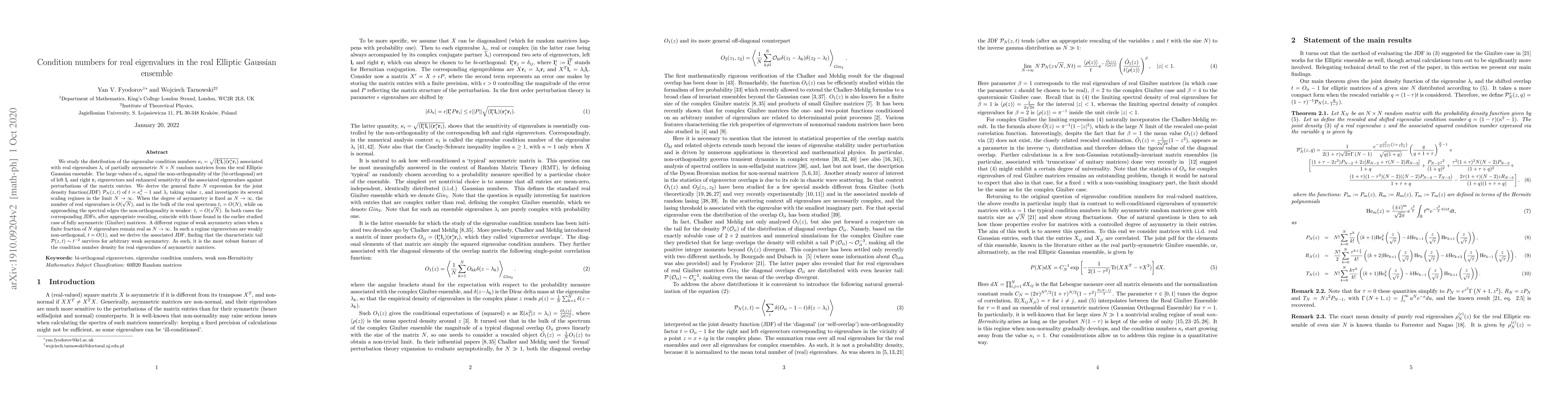 This paper studies how the condition numbers of real eigenvalues in asymmetric matrices from the real Elliptic Gaussian ensemble change as the degree of asymmetry varies, finding that certain features remain robust under weak asymmetry.