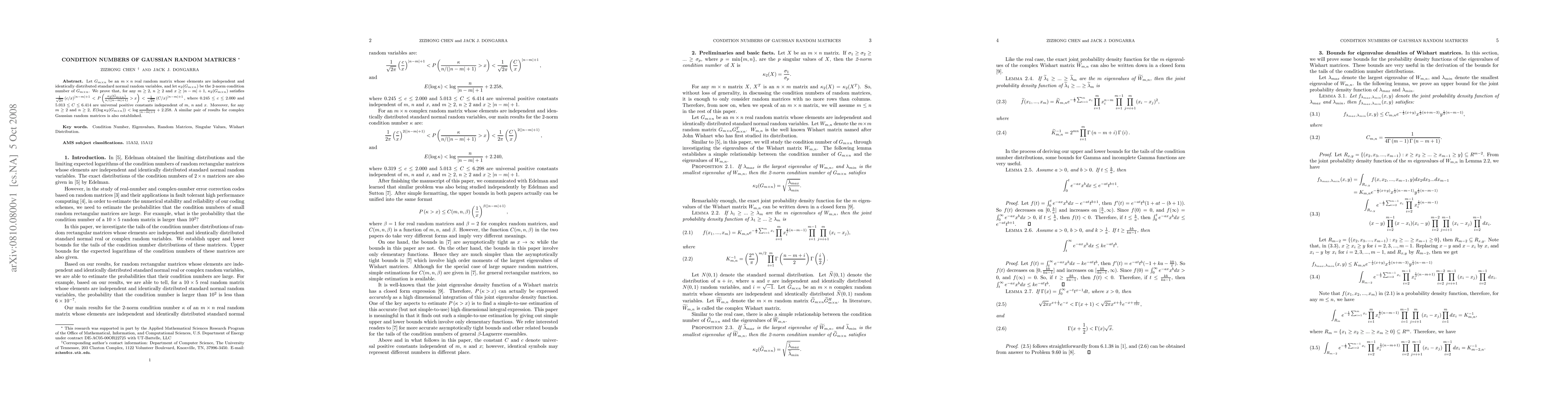 This research paper establishes bounds for the 2-norm condition number of Gaussian random matrices, providing a statistical framework for understanding their behavior in numerical computations.