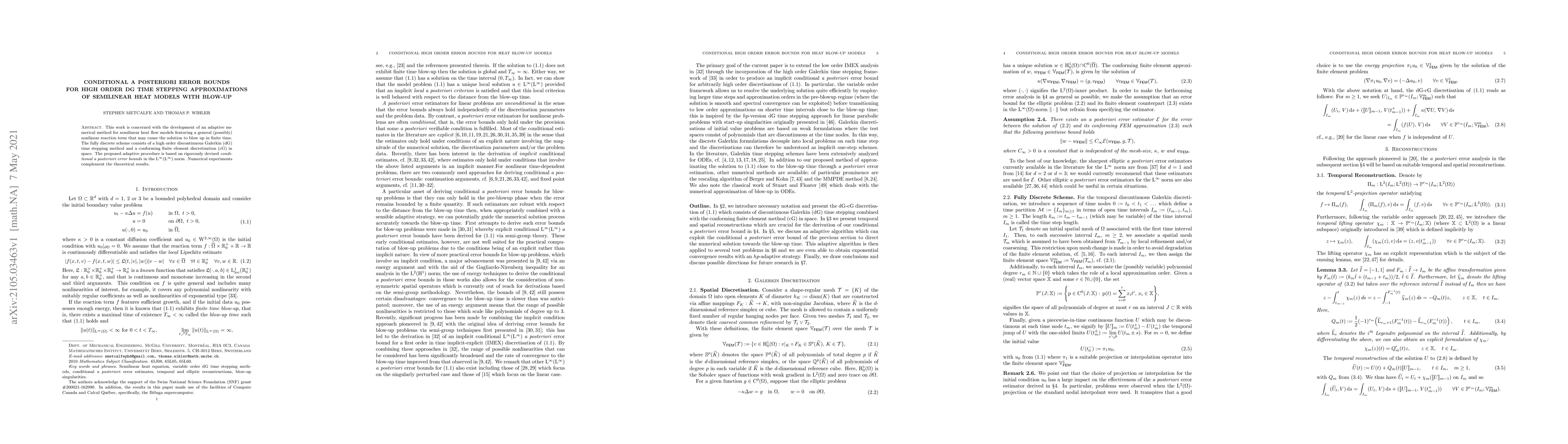 This paper develops an adaptive numerical method for semilinear heat flow models using a high order discontinuous Galerkin time stepping and conforming finite element space discretization, focusing on scenarios where solutions may blow up. It provides conditional a posteriori error bounds and supports the theory with numerical experiments.
