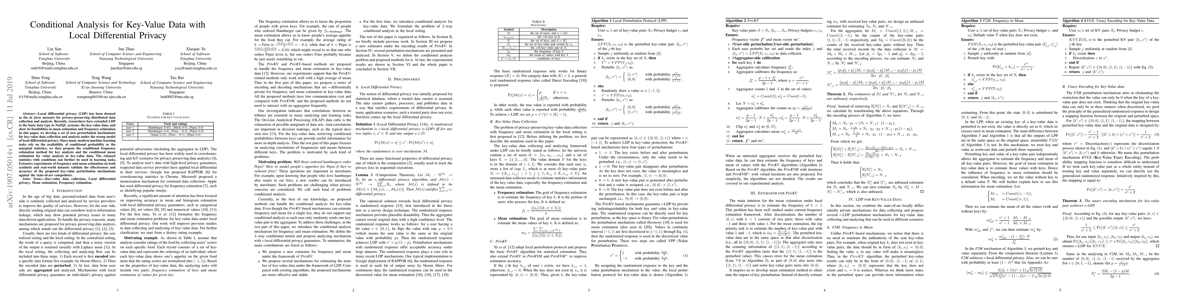 This paper introduces new perturbation mechanisms for local differential privacy in key-value data analysis, proposing conditional frequency and mean estimation methods to enhance privacy-preserving data collection. The effectiveness and accuracy of these mechanisms are validated through experiments on synthetic and real-world datasets.