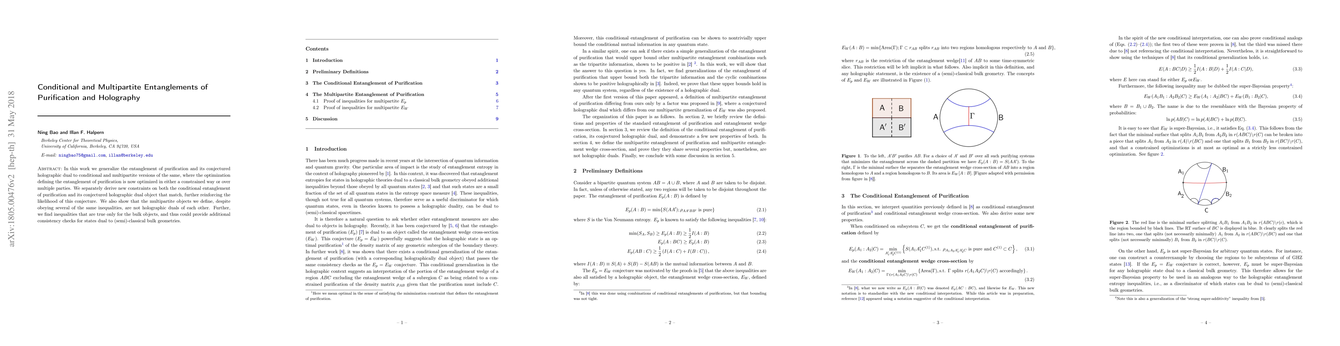 This paper generalizes the entanglement of purification and its holographic dual to conditional and multipartite forms, deriving new constraints that support the conjectured holographic relationship. It finds that while multipartite objects obey similar inequalities, they are not holographic duals of each other, and identifies bulk-specific inequalities for consistency checks of semi-classical bulk geometries.