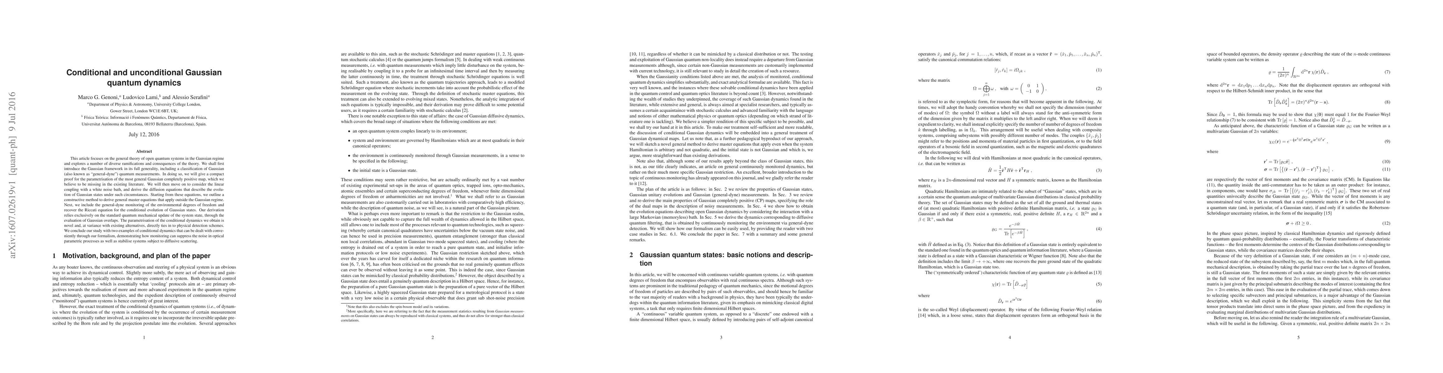 This article focuses on the general theory of open quantum systems in the Gaussian regime and explores a number of diverse ramifications and consequences of the theory. We shall first introduce the Gaussian framework in its full generality, including a classification of Gaussian (also known as "general-dyne") quantum measurements. In doing so, we will give a compact proof for the parametrisation of the most general Gaussian completely positive map, which we believe to be missing in the existing literature. We will then move on to consider the linear coupling with a white noise bath, and derive the diffusion equations that describe the evolution of Gaussian states under such circumstances. Starting from these equations, we outline a constructive method to derive general master equations that apply outside the Gaussian regime. Next, we include the general-dyne monitoring of the environmental degrees of freedom and recover the Riccati equation for the conditional evolution of Gaussian states. Our derivation relies exclusively on the standard quantum mechanical update of the system state, through the evaluation of Gaussian overlaps. The parametrisation of the conditional dynamics we obtain is novel and, at variance with existing alternatives, directly ties in to physical detection schemes. We conclude our study with two examples of conditional dynamics that can be dealt with conveniently through our formalism, demonstrating how monitoring can suppress the noise in optical parametric processes as well as stabilise systems subject to diffusive scattering.