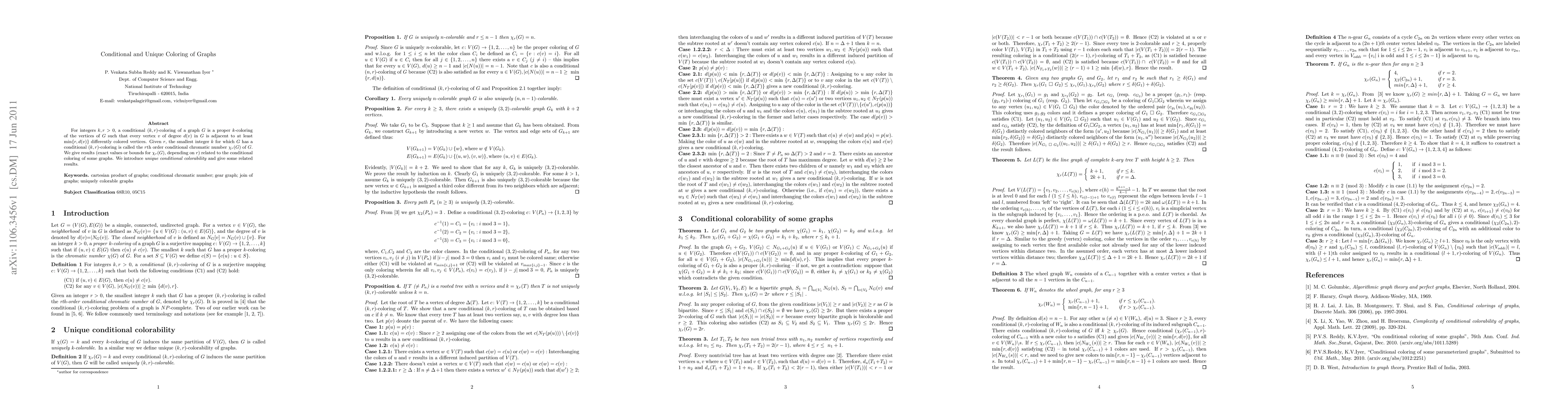 This paper explores the concept of conditional $(k,r)$-coloring in graphs, where each vertex must be adjacent to at least $\min\{r, d(v)\}$ differently colored vertices, and defines the $r$th order conditional chromatic number $\chi_r(G)$. It provides results and bounds for $\chi_r(G)$ for specific graph types and introduces the notion of unique conditional colorability.