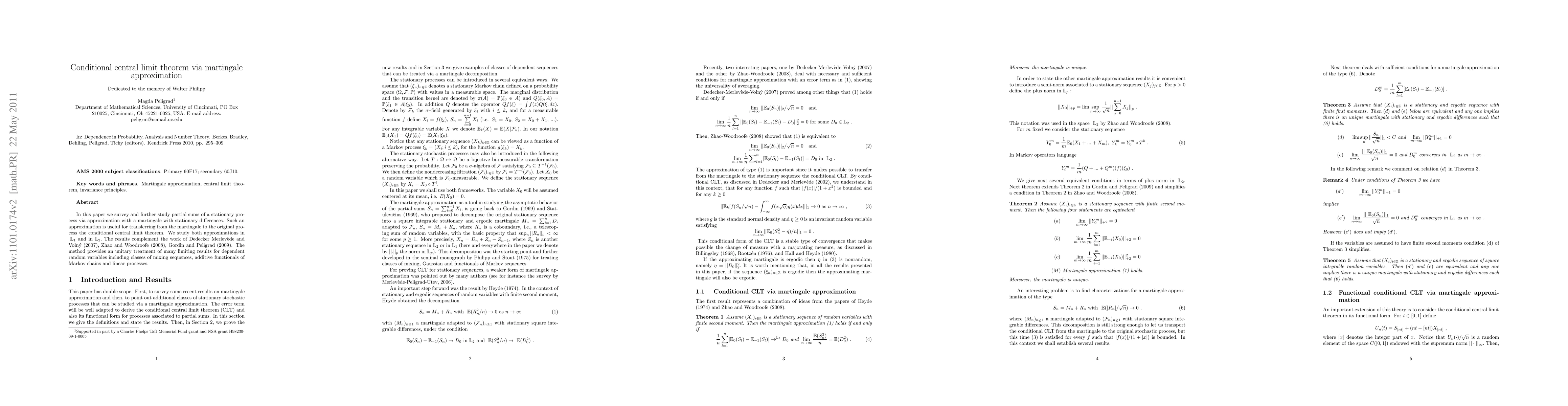 This paper surveys and extends the conditional central limit theorem for stationary processes by approximating them with martingales with stationary differences. The method provides a unified treatment of various limiting results for dependent random variables, including mixing sequences and linear processes.