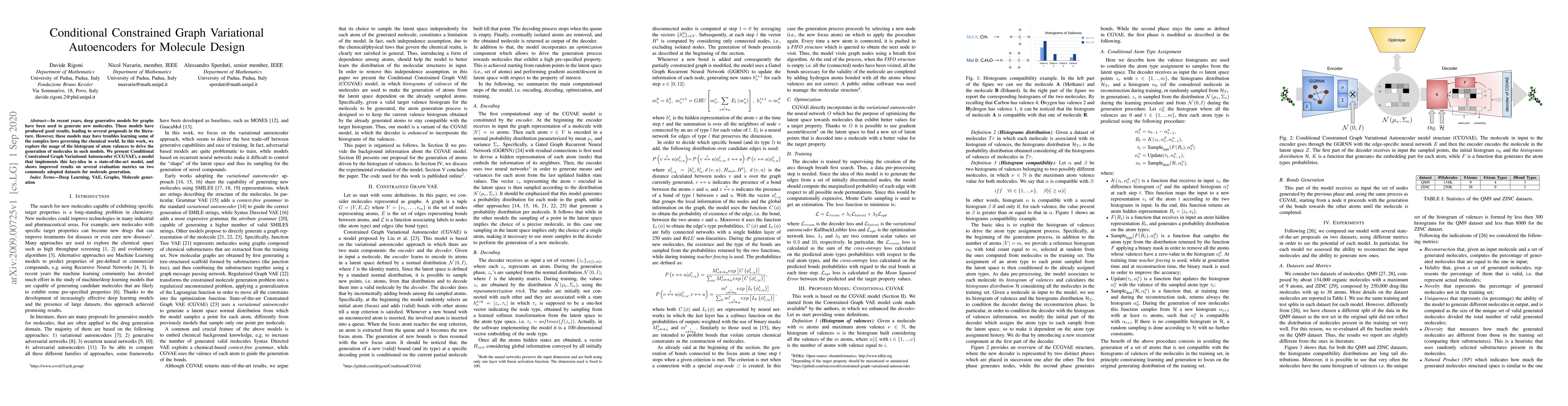 This paper introduces the Conditional Constrained Graph Variational Autoencoder (CCGVAE) to enhance molecule generation using deep generative models. The model leverages the histogram of atom valences to improve learning of chemical laws, achieving better performance on standard molecule generation datasets.