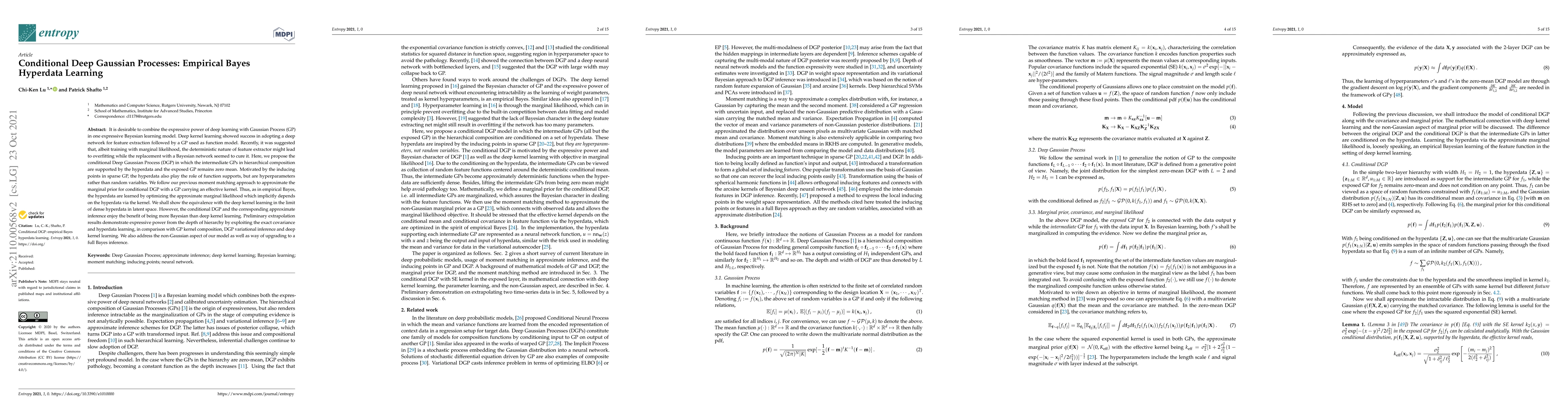 This paper proposes a Conditional Deep Gaussian Process (DGP) that integrates the strengths of deep learning and Gaussian Processes (GPs) within a Bayesian framework. The model uses hyperdata to support intermediate GPs, which are optimized via empirical Bayes to mitigate overfitting, demonstrating improved performance over deep kernel learning.