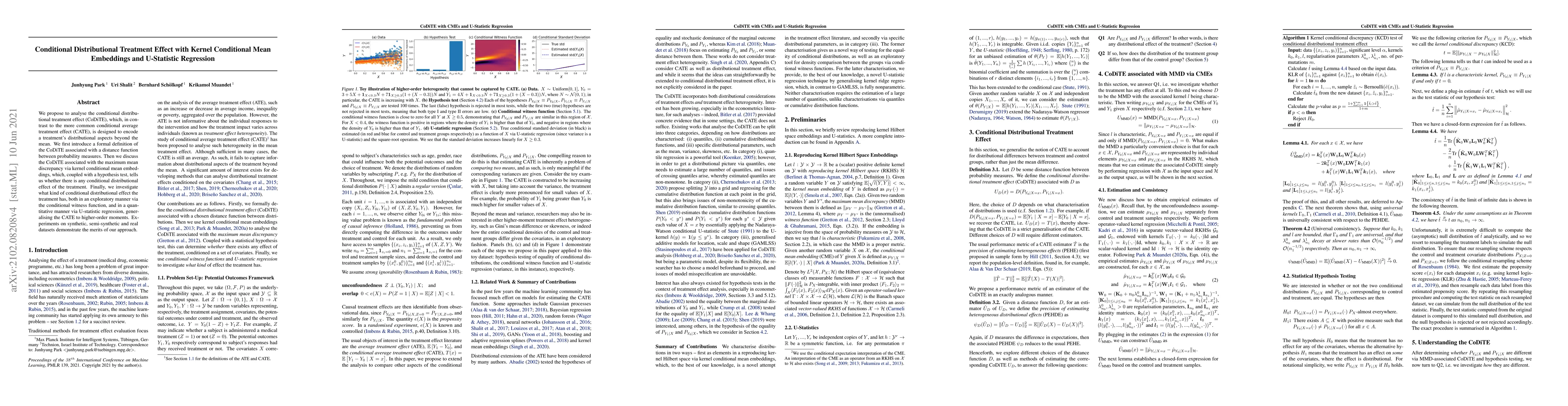 This paper proposes a method to analyze the conditional distributional treatment effect (CoDiTE) beyond the average treatment effect, using kernel conditional mean embeddings and U-statistic regression. It introduces a formal definition of CoDiTE and demonstrates its application through hypothesis testing and exploratory analysis, validated by experiments on various datasets.