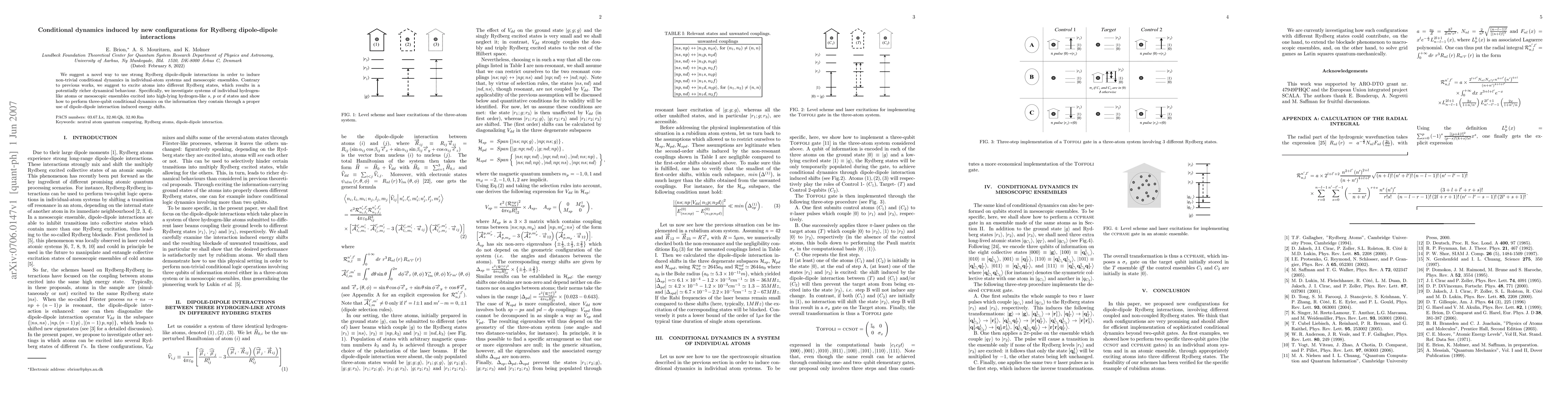 A novel approach to inducing non-trivial conditional dynamics using Rydberg dipole-dipole interactions was proposed.