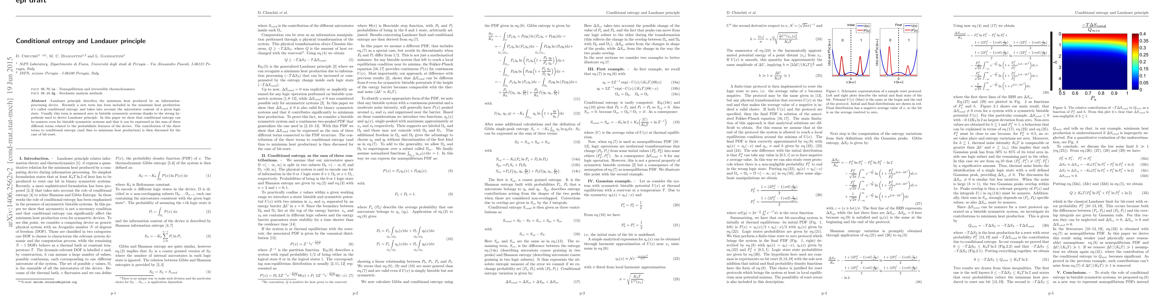 Landauer principle describes the minimum heat produced by an information-processing device. Recently a new term has been included in the minimum heat production: it's called conditional entropy and takes into account the microstates content of a given logic state. Usually this term is assumed zero in bistable symmetric systems thanks to the strong hypothesis used to derive Landauer principle. In this paper we show that conditional entropy can be nonzero even for bistable symmetric systems and that it can be expressed as the sum of three different terms related to the probabilistic features of the device. The contribution of the three terms to conditional entropy (and thus to minimum heat production) is then discussed for the case of bit-reset.