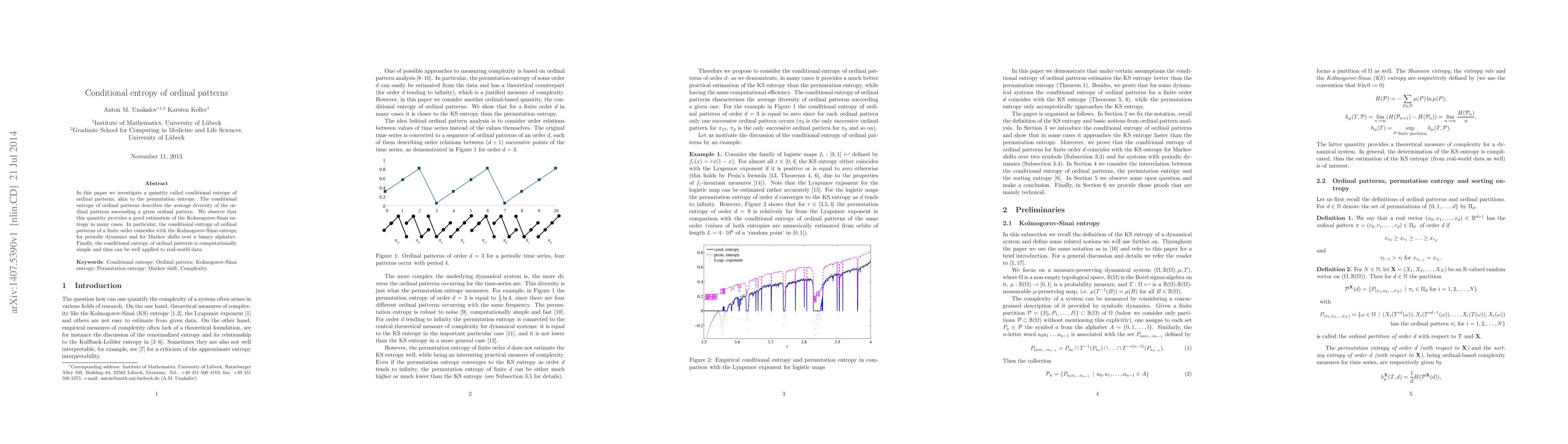 This paper explores conditional entropy of ordinal patterns, which measures the average diversity of subsequent ordinal patterns following a given one, analogous to permutation entropy. It finds this measure effectively estimates Kolmogorov-Sinai entropy, especially for periodic dynamics and binary Markov shifts, and is computationally simple for real-world data applications.