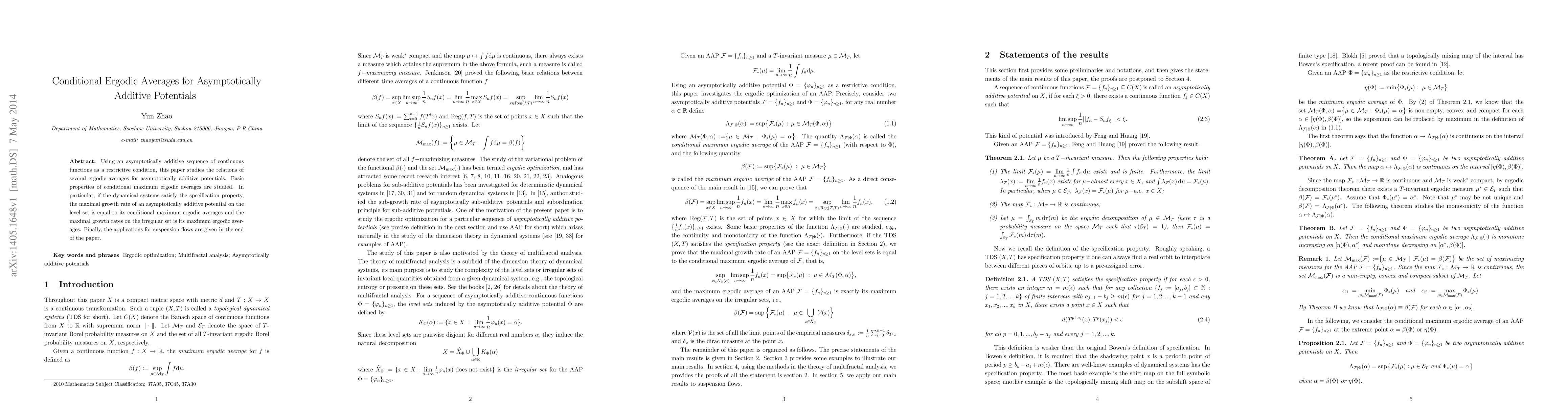 Using an asymptotically additive sequence of continuous functions as a restrictive condition, this paper studies the relations of several ergodic averages for asymptotically additive potentials. Basic properties of conditional maximum ergodic averages are studied. In particular, if the dynamical systems satisfy the specification property, the maximal growth rate of an asymptotically additive potential on the level set is equal to its conditional maximum ergodic averages and the maximal growth rates on the irregular set is its maximum ergodic averages. Finally, the applications for suspension flows are given in the end of the paper.