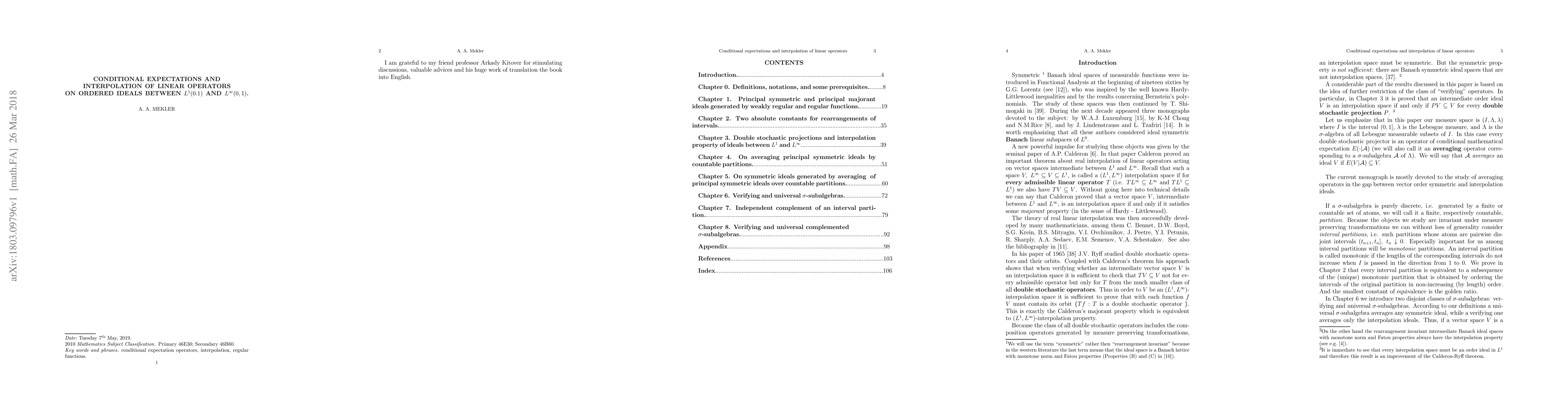The monograph contains the detailed exposition of the results obtained by the author during the last several years. In particular it contains an improvement of the well known Calderon - Ryff interpolation theorem and description of "verifying" operators of conditional mathematical expectations {if such an operator leaves an order ideal in $L^1% invariant, then the ideal is an interpolation space}.